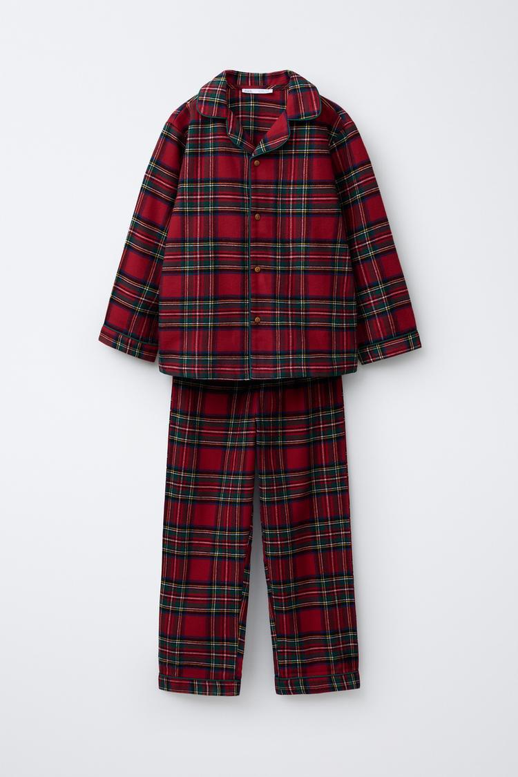 ZARA ФЛАНЕЛЕВАЯ ПИЖАМА В КЛЕТКУ, КРАСНЫЙ