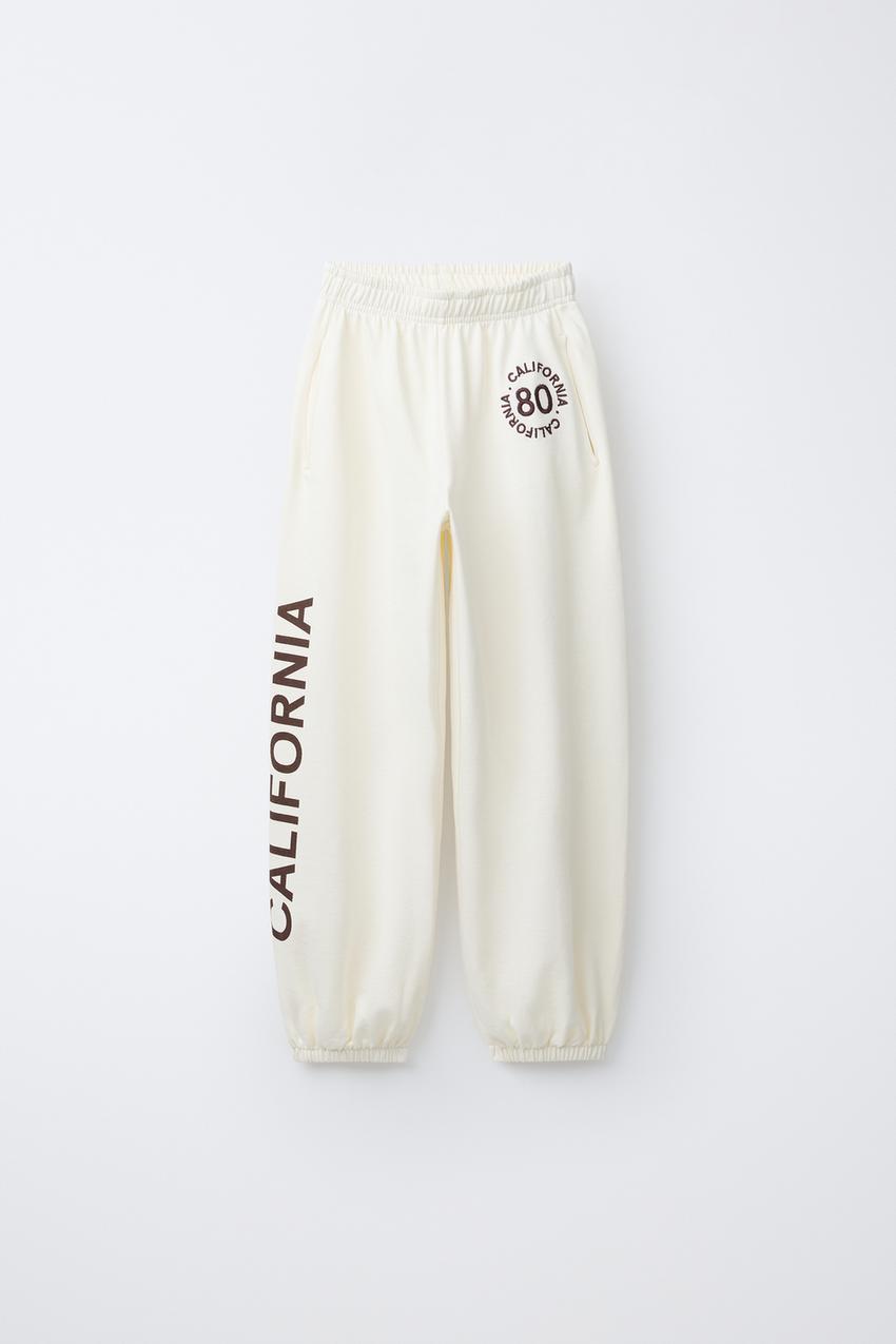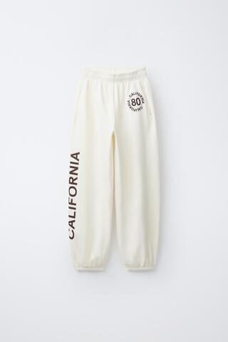 ZARA ФЛИСОВЫЕ БРЮКИ BALLOON С НАДПИСЬЮ, ЭКРЮ