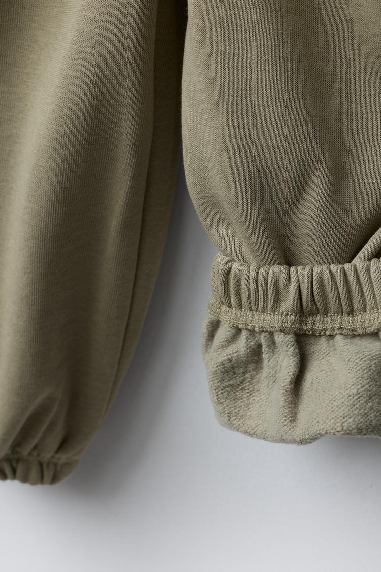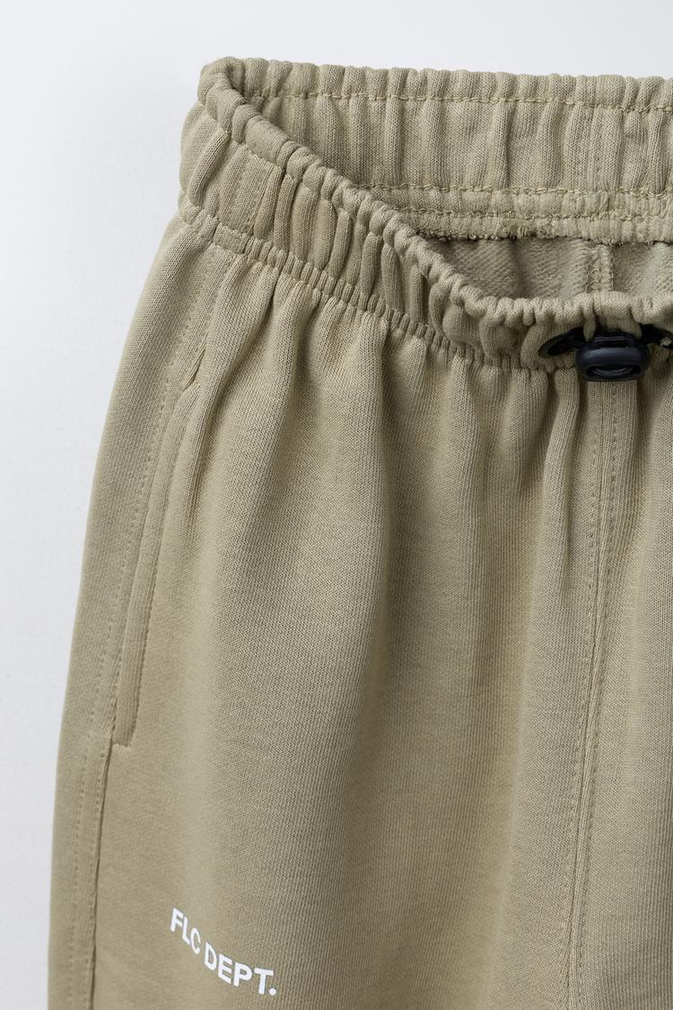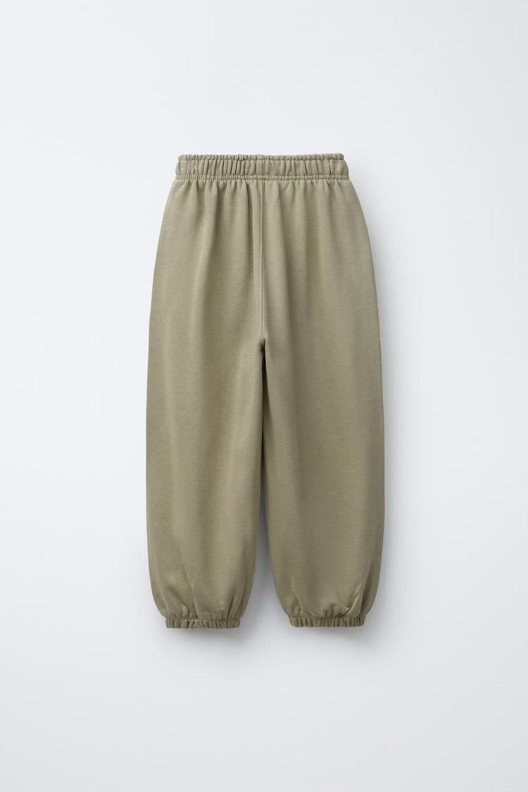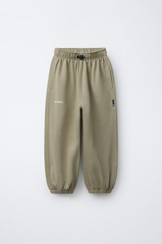 ZARA ФЛИСОВЫЕ БРЮКИ BALLOON С НАДПИСЬЮ, ОЛИВКОВЫЙ