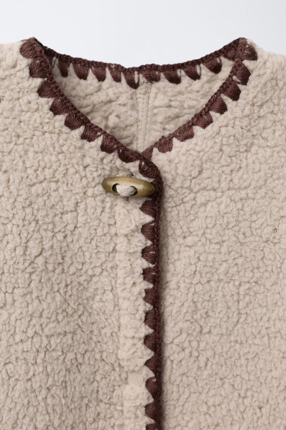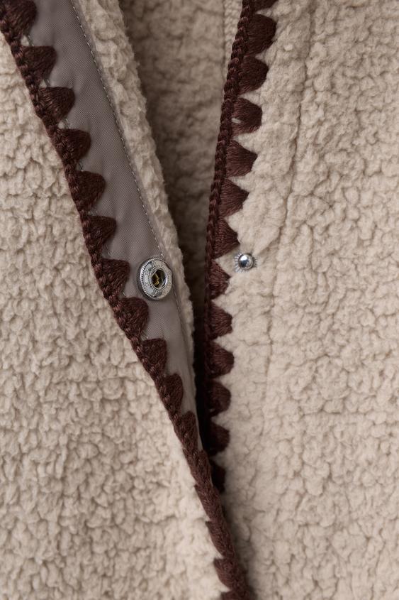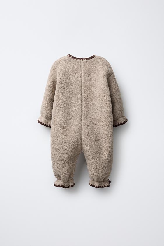 ZARA ФЛИСОВЫЙ КОМБИНЕЗОН С КОНТРАСТНОЙ ОТДЕЛКОЙ, БЕЖЕВЫЙ