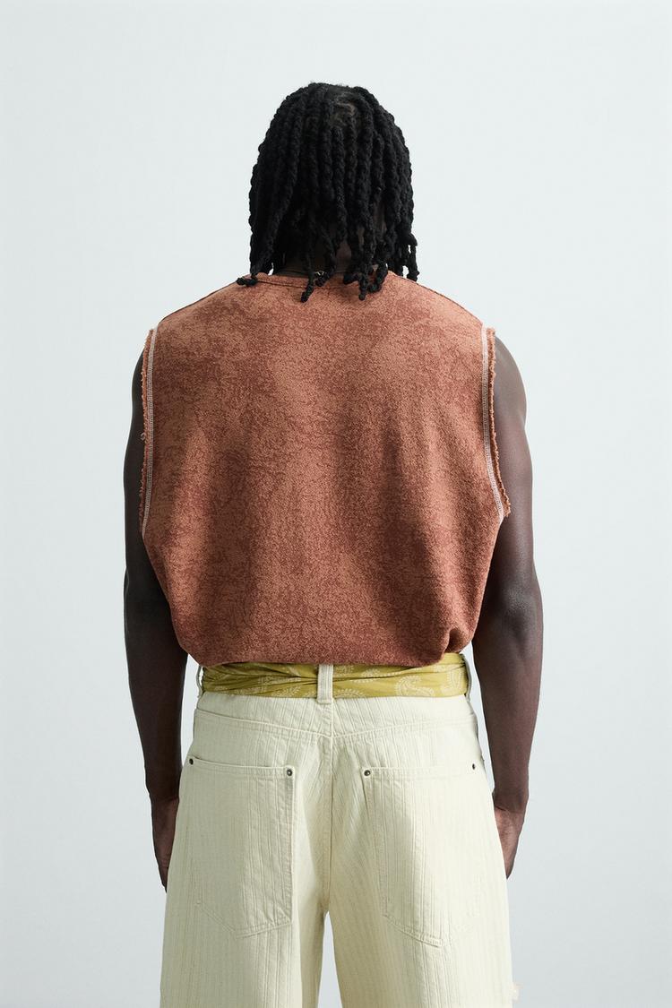 ZARA ФУТБОЛКА БЕЗ РУКАВОВ С ЭФФЕКТОМ ПОТЕРТОСТИ, ЧЕРЕПИЧНЫЙ