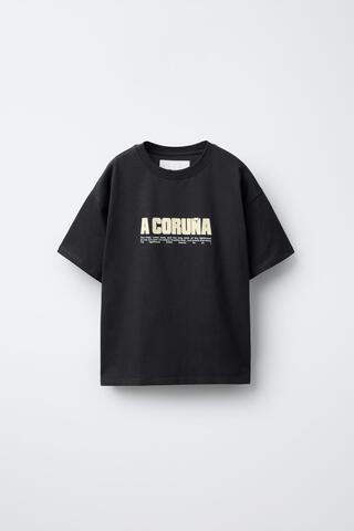Футболка с круглым вырезом и короткими рукавами. Текст и фотография города Ла-Корунья спереди и сзади. Ткань: 100% хлопок.