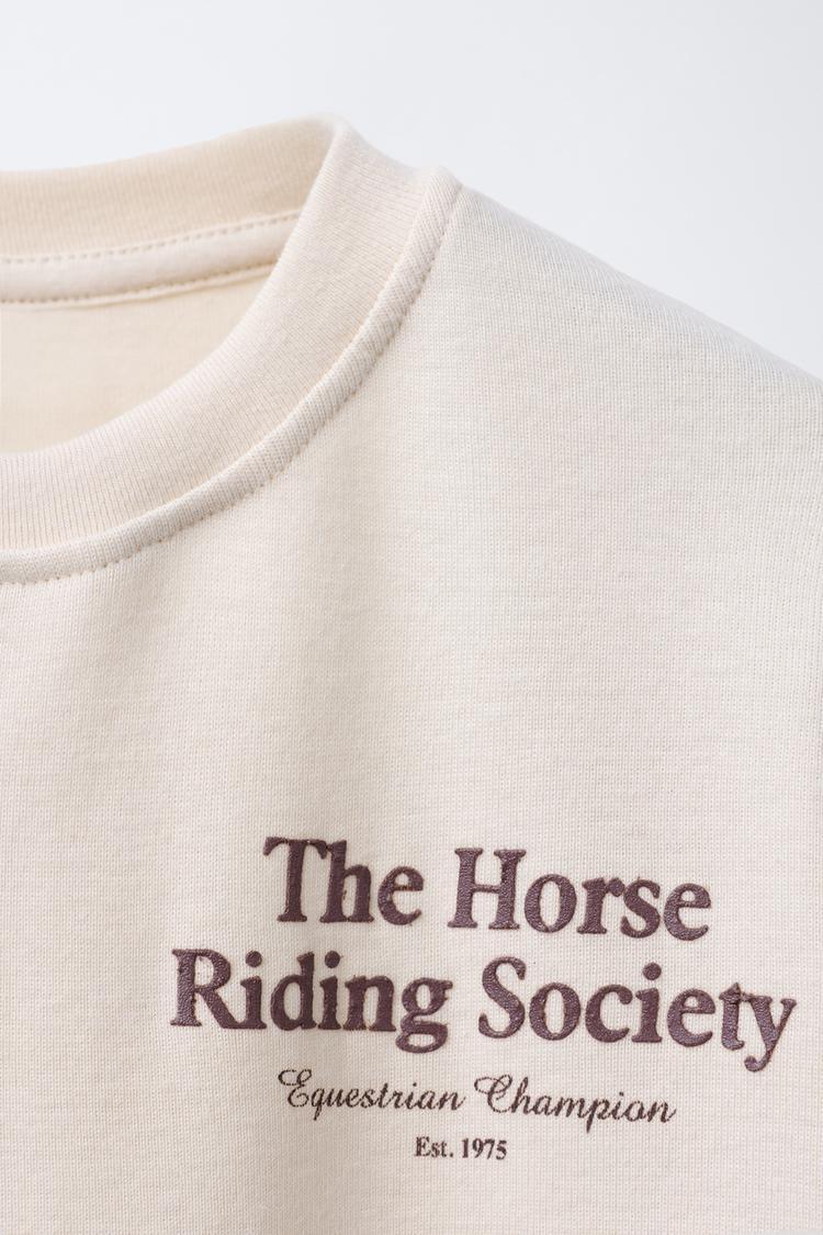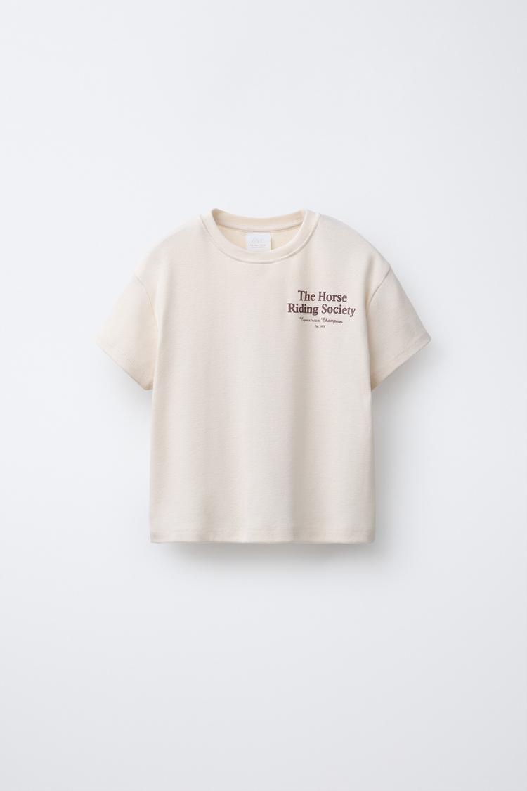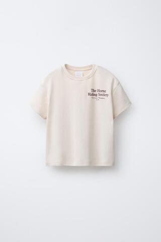 ZARA ФУТБОЛКА ДЛЯ ВЕРХОВОЙ ЕЗДЫ С РЕЛЬЕФНЫМ ТЕКСТОМ, ПЕСОЧНЫЙ