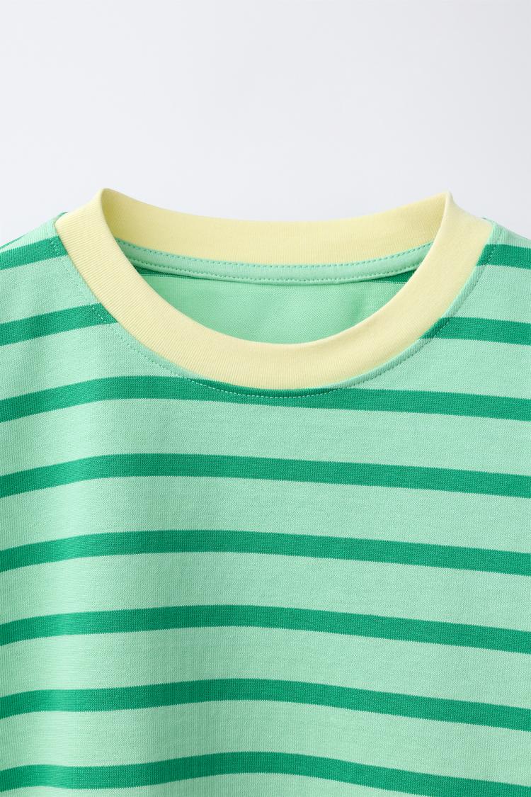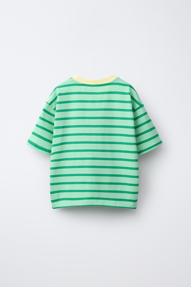 ZARA ФУТБОЛКА HEAVY WEIGHT В ПОЛОСКУ, ЛИНЯЛЫЙ ЗЕЛЕНЫЙ