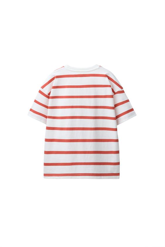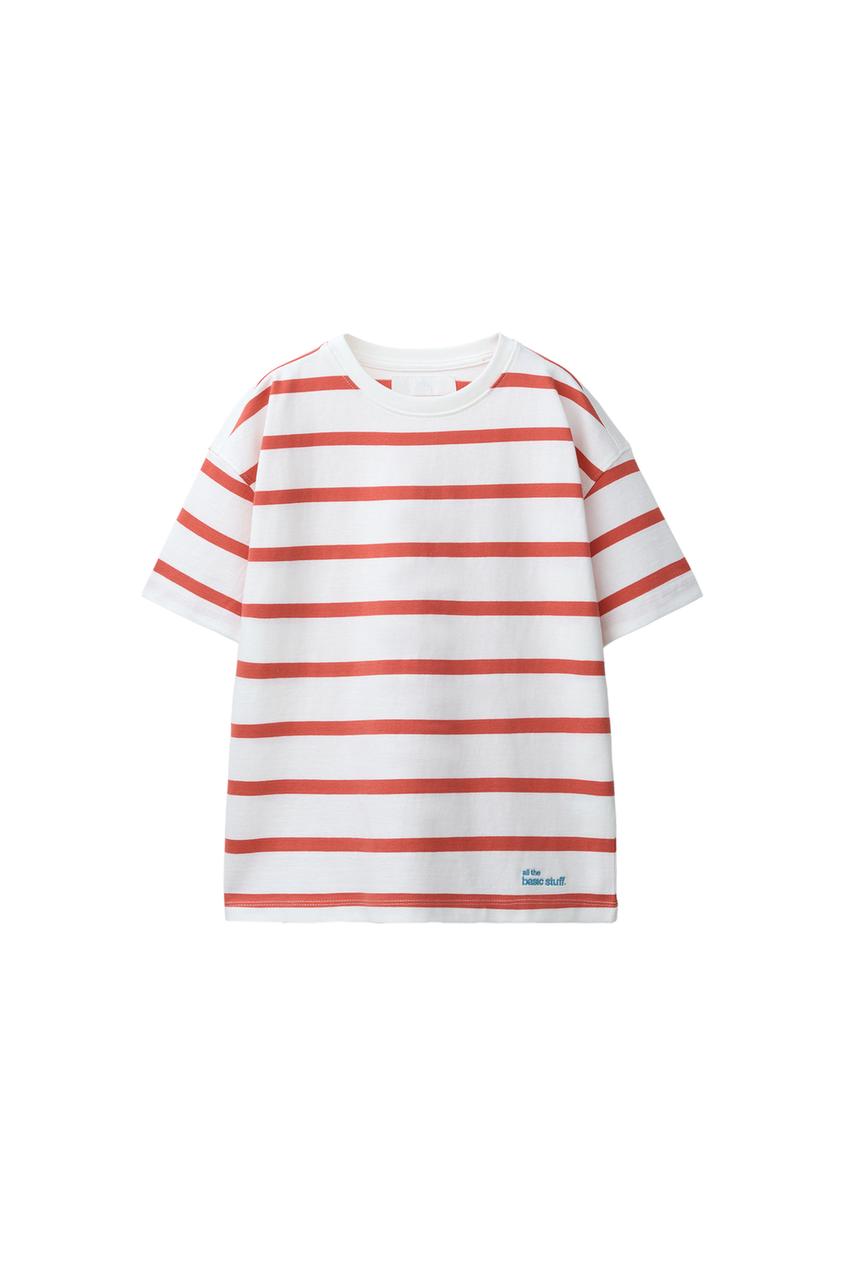 ZARA ФУТБОЛКА HEAVY WEIGHT В ПОЛОСКУ С НАДПИСЬЮ, КРАСНАЯ ПОЛОСКА