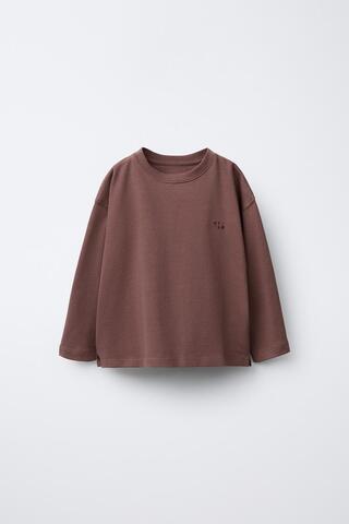 Футболка с круглым вырезом и длинными рукавами. Вышивка на груди. Ткань: 100% хлопок.