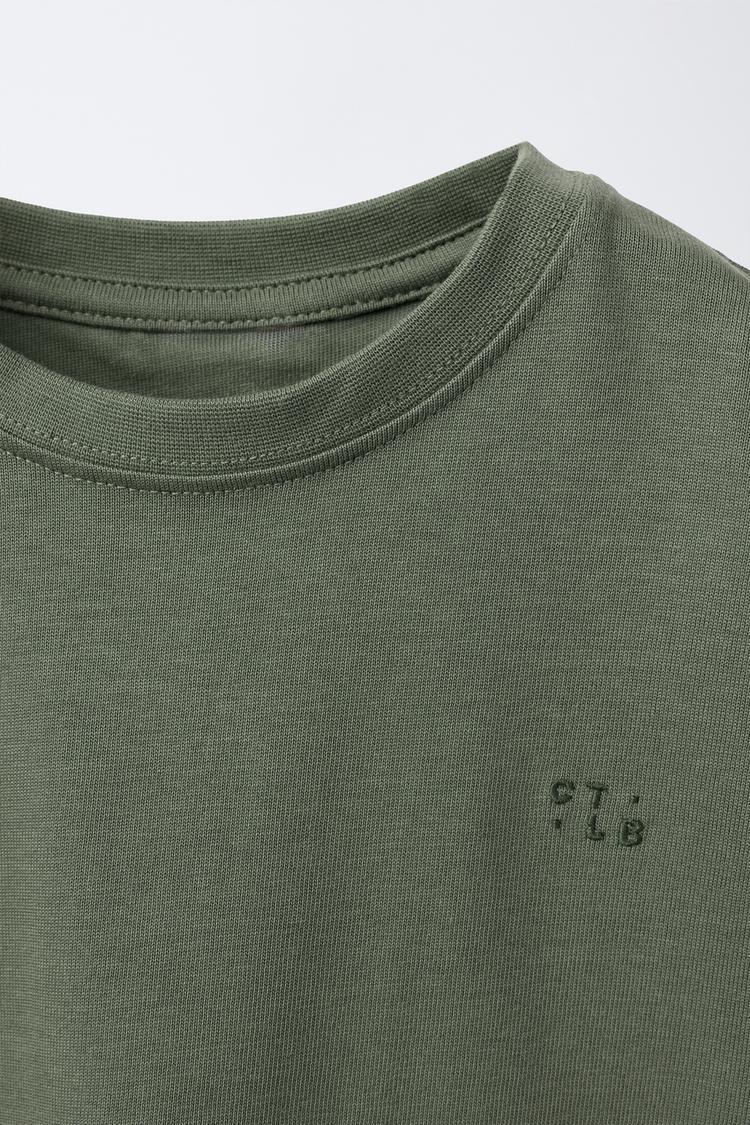 ZARA ФУТБОЛКА HEAVYWEIGHT С ВЫШИВКОЙ, ТЕМНО-ЗЕЛЕНЫЙ