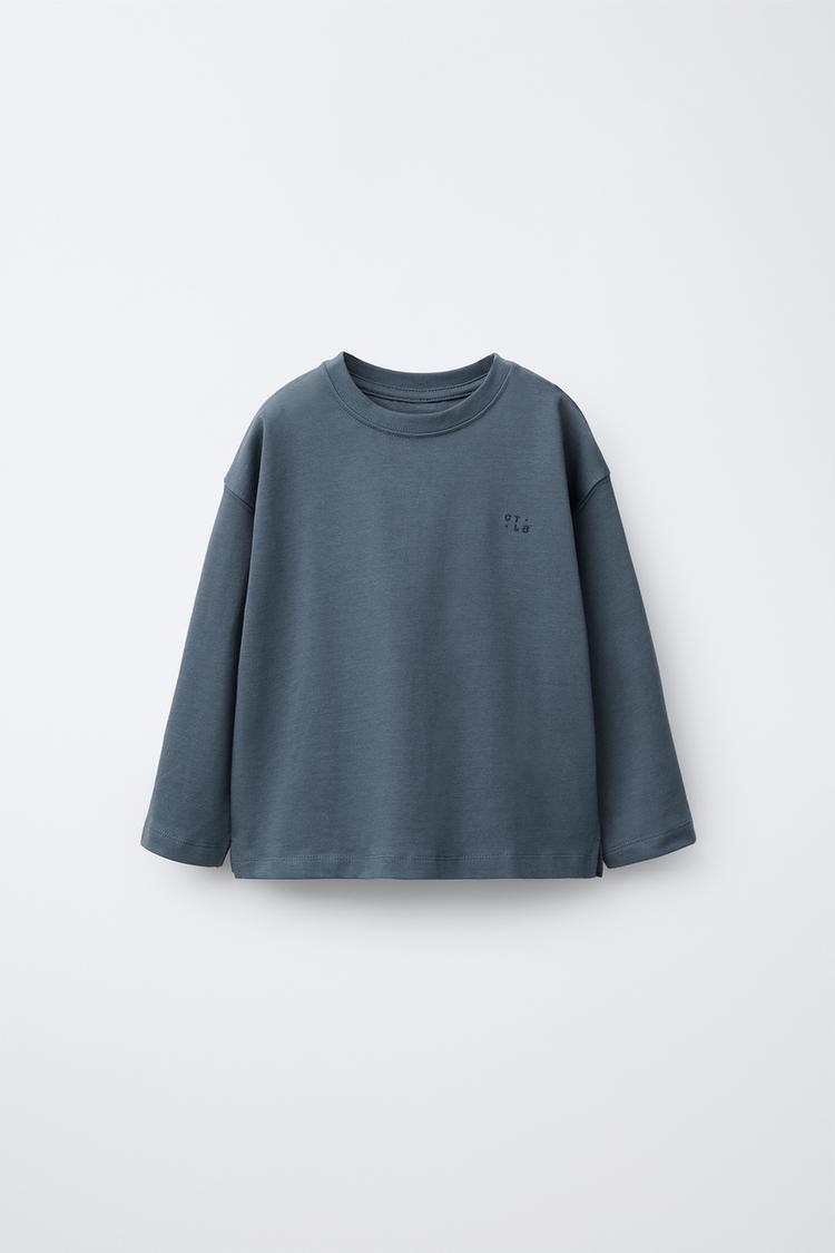 Футболка с круглым вырезом и длинными рукавами. Вышивка на груди. Ткань: 100% хлопок.