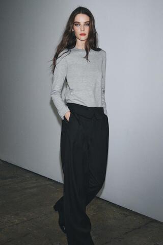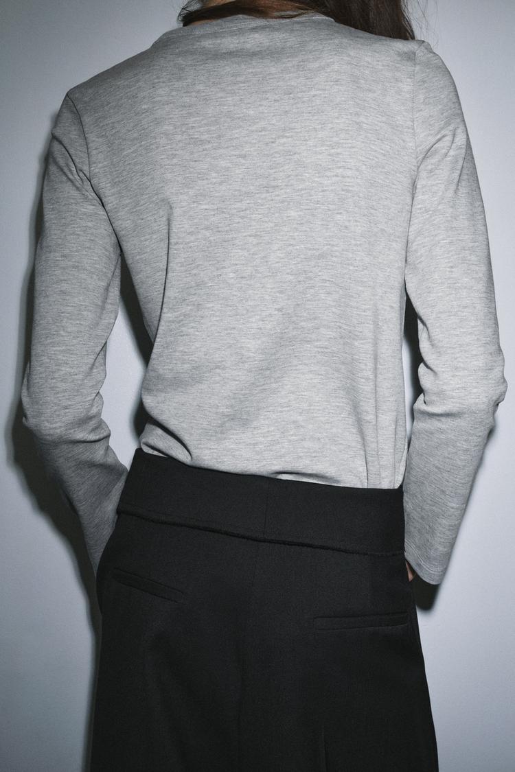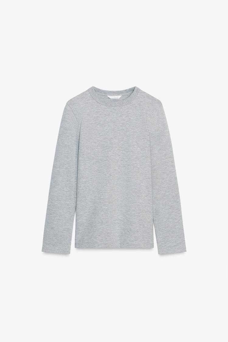 ZARA ФУТБОЛКА INTERLOCK С ДЛИННЫМИ РУКАВАМИ, СЕРЫЙ МЕЛАНЖ