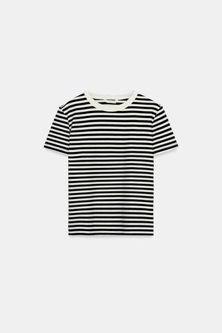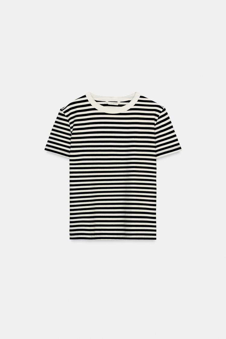 ZARA ФУТБОЛКА INTERLOCK С КОРОТКИМ РУКАВОМ, ПОЛОСКИ
