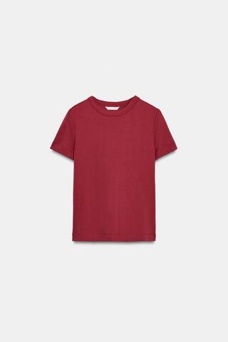 ZARA ФУТБОЛКА INTERLOCK С КОРОТКИМИ РУКАВАМИ, ГРАНАТОВЫЙ
