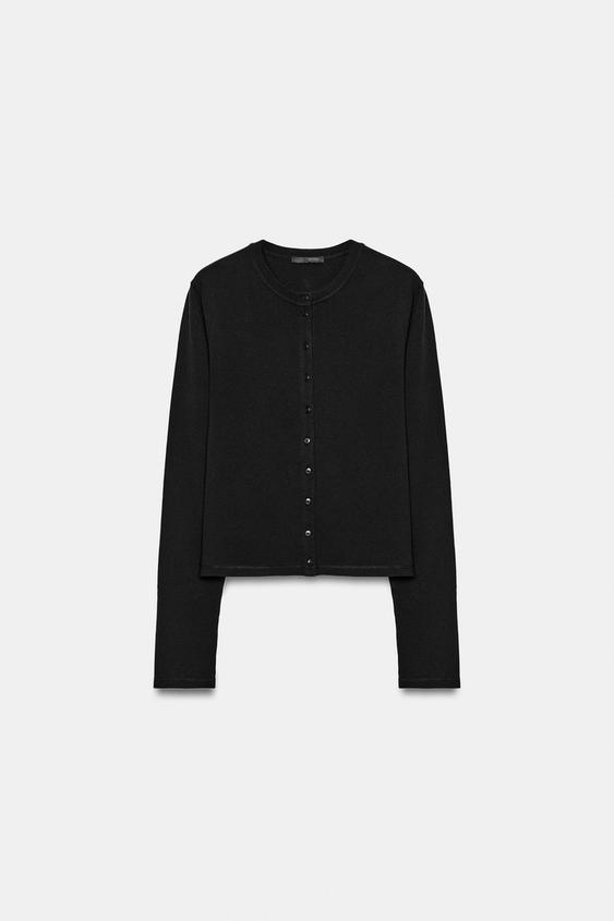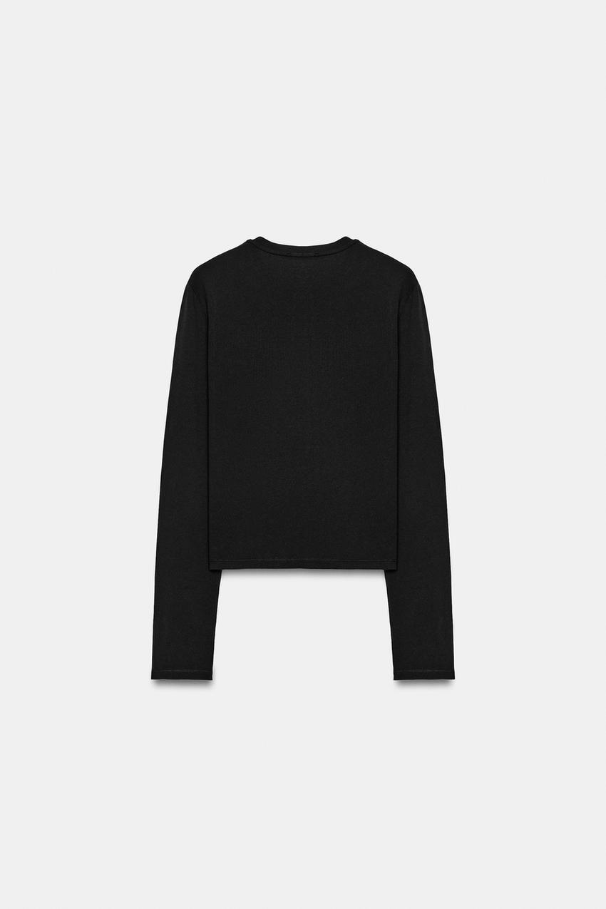 ZARA ФУТБОЛКА ИЗ 100% ХЛОПКА НА ПУГОВИЦАХ, ЧЕРНЫЙ