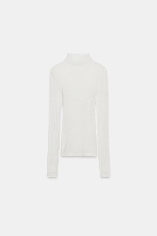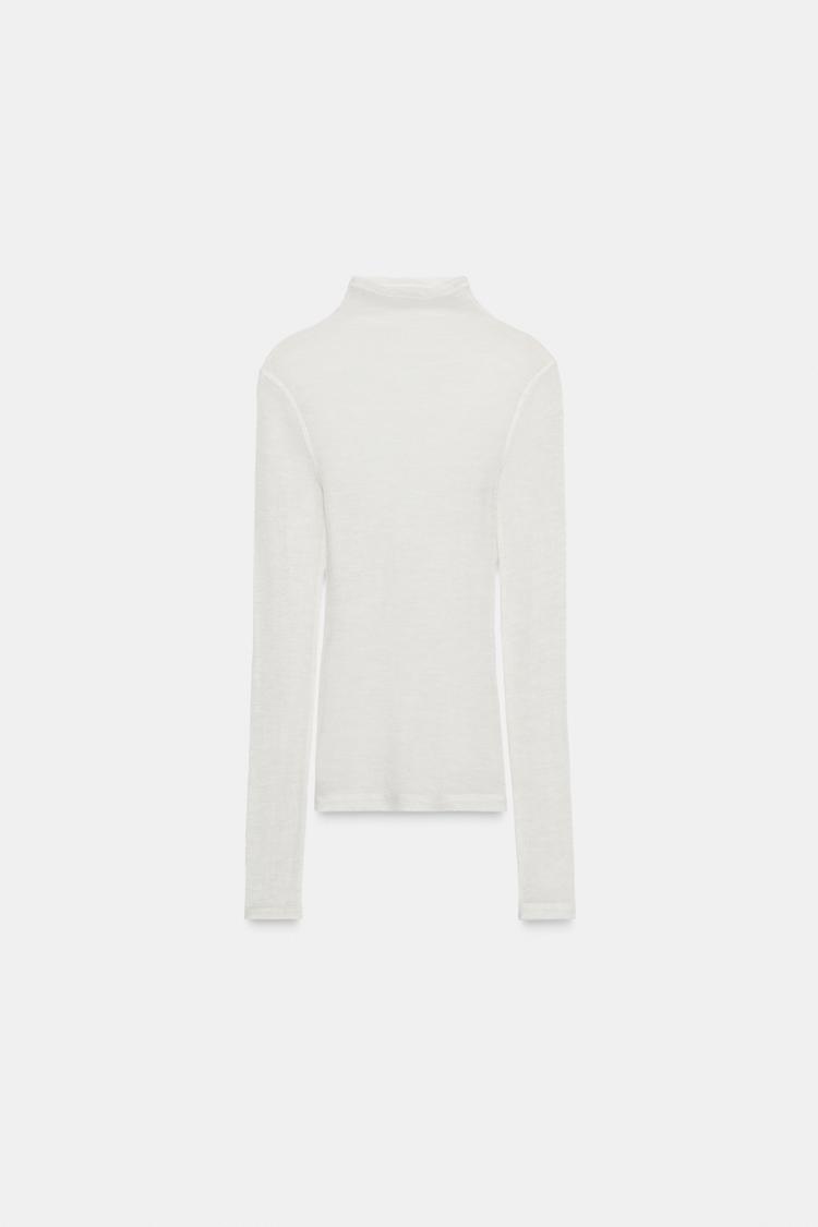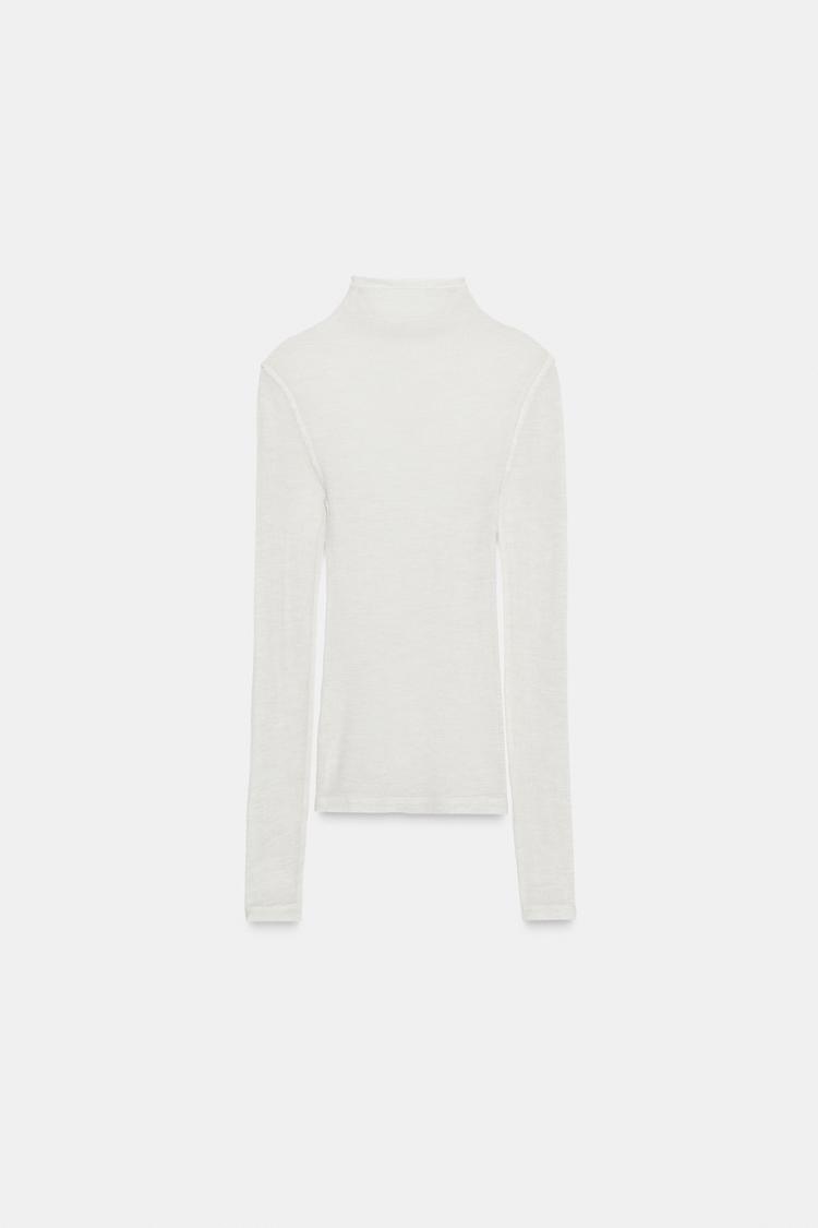 ZARA ФУТБОЛКА ИЗ 100% ШЕРСТИ, ЭКРЮ