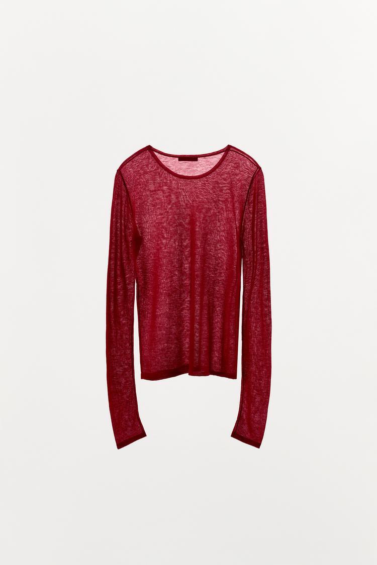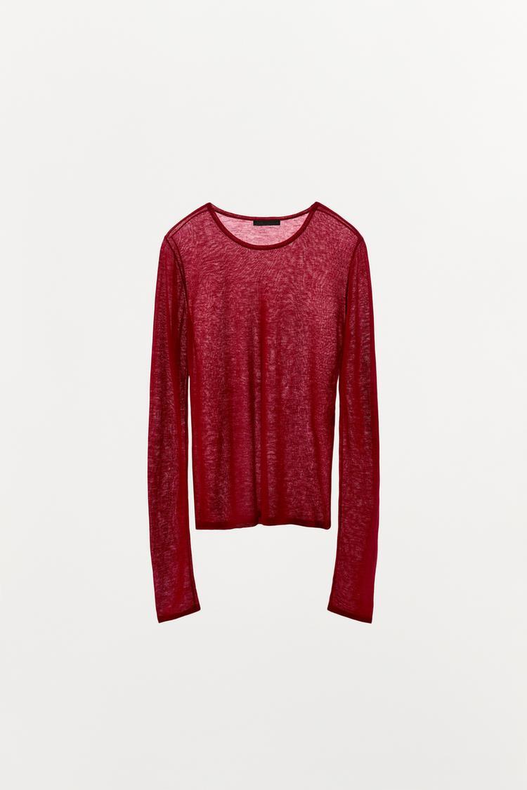 ZARA ФУТБОЛКА ИЗ 100% ШЕРСТИ, КЛУБНИЧНЫЙ