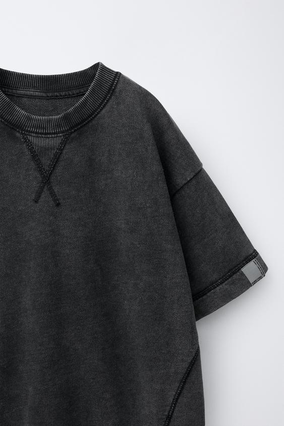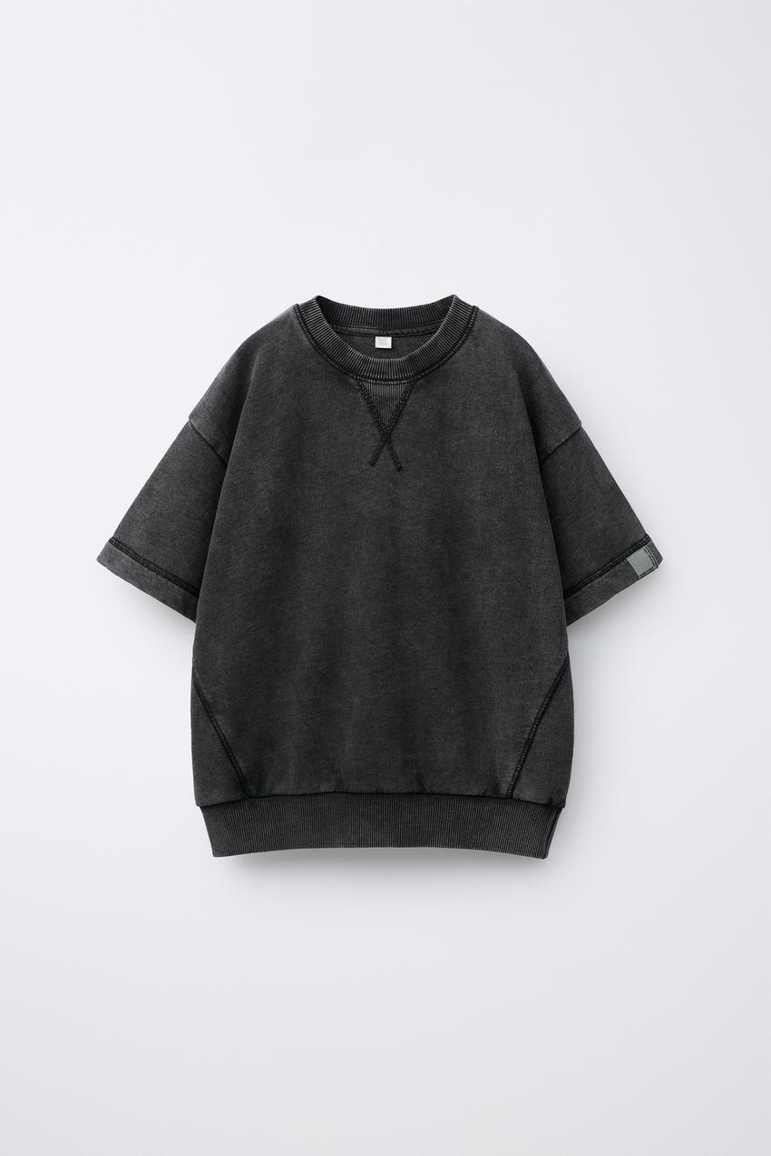 ZARА ФУТБОЛКА ИЗ ФУТЕРА С НАШИВКОЙ, АНТРАЦИТОВО-СЕРЫЙ