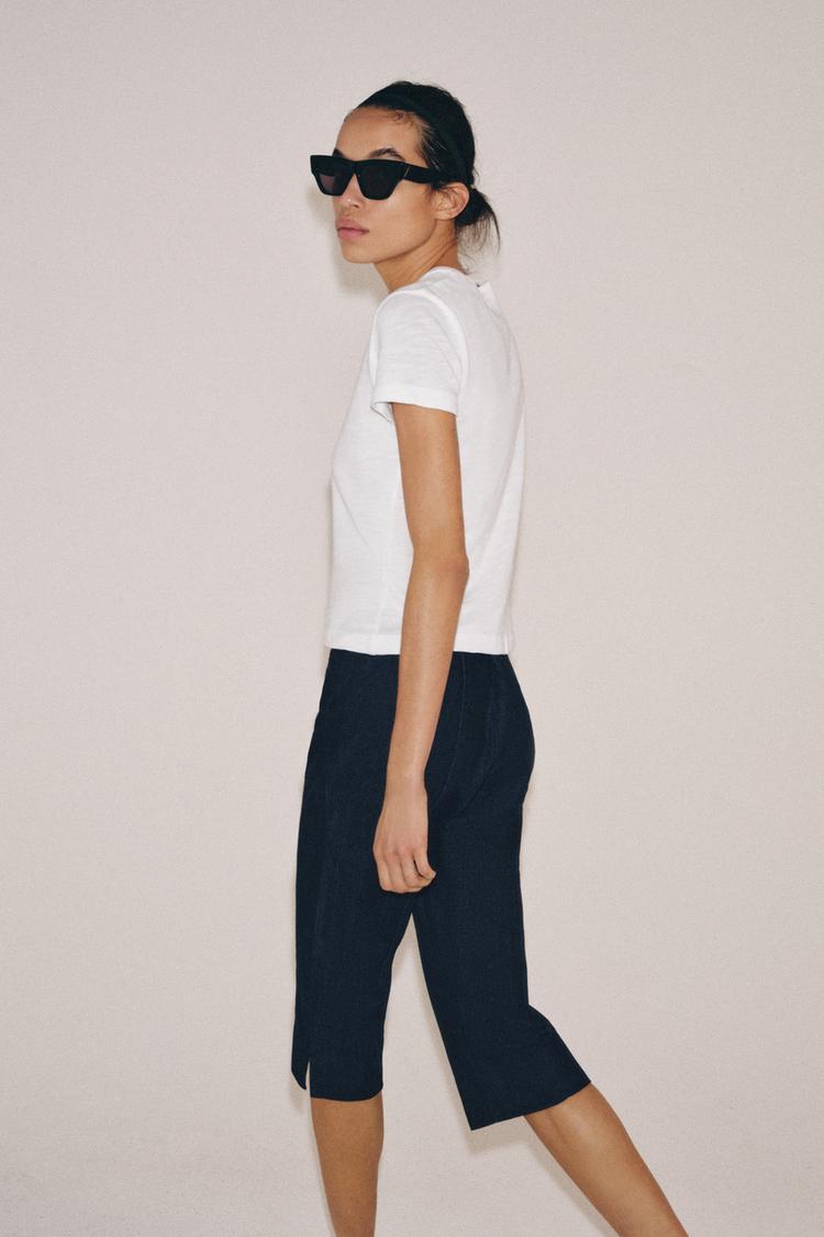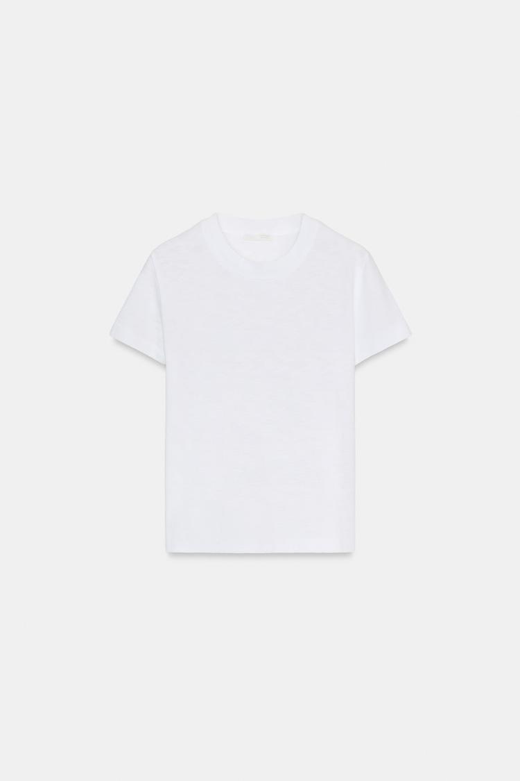 ZARA ФУТБОЛКА ИЗ ХЛОПКА ФЛАМЕ, БЕЛЫЙ