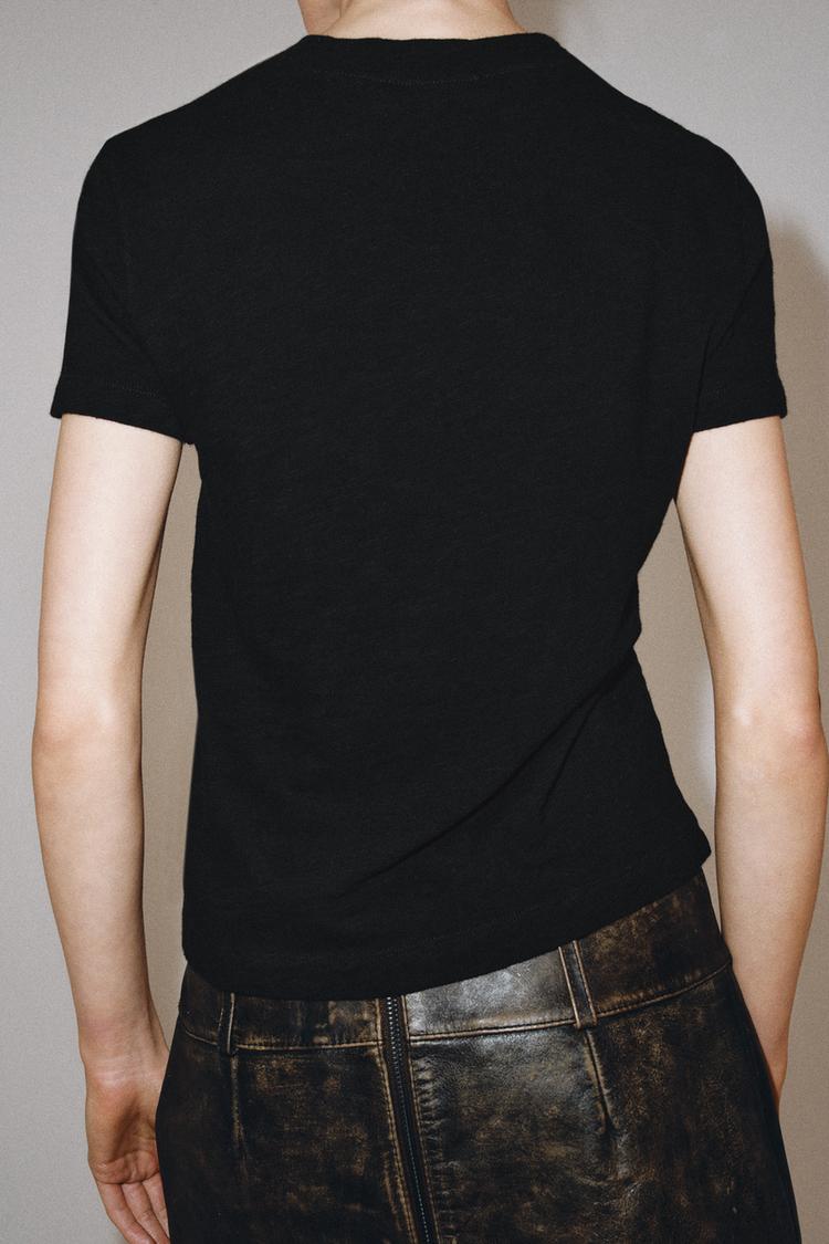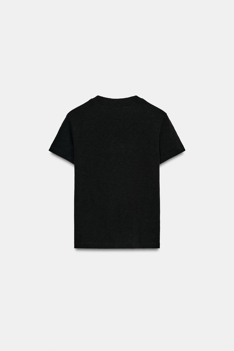 ZARA ФУТБОЛКА ИЗ ХЛОПКА ФЛАМЕ, ЧЕРНЫЙ
