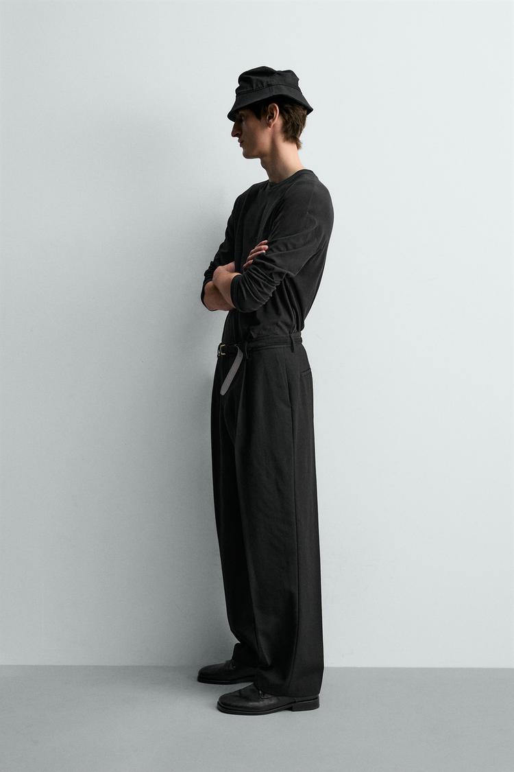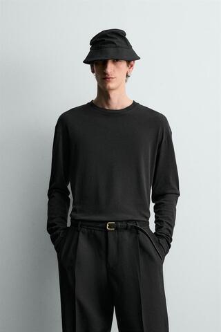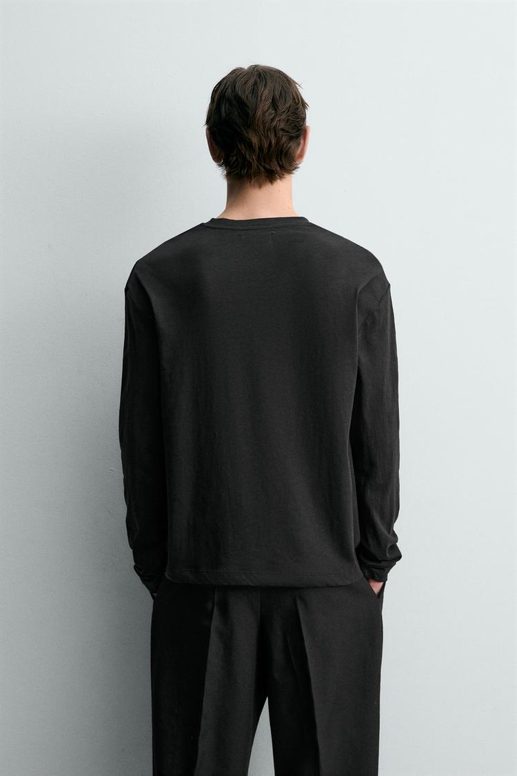 ZARA ФУТБОЛКА ИЗ ХЛОПКА И ЛЬНА, ЧЕРНЫЙ