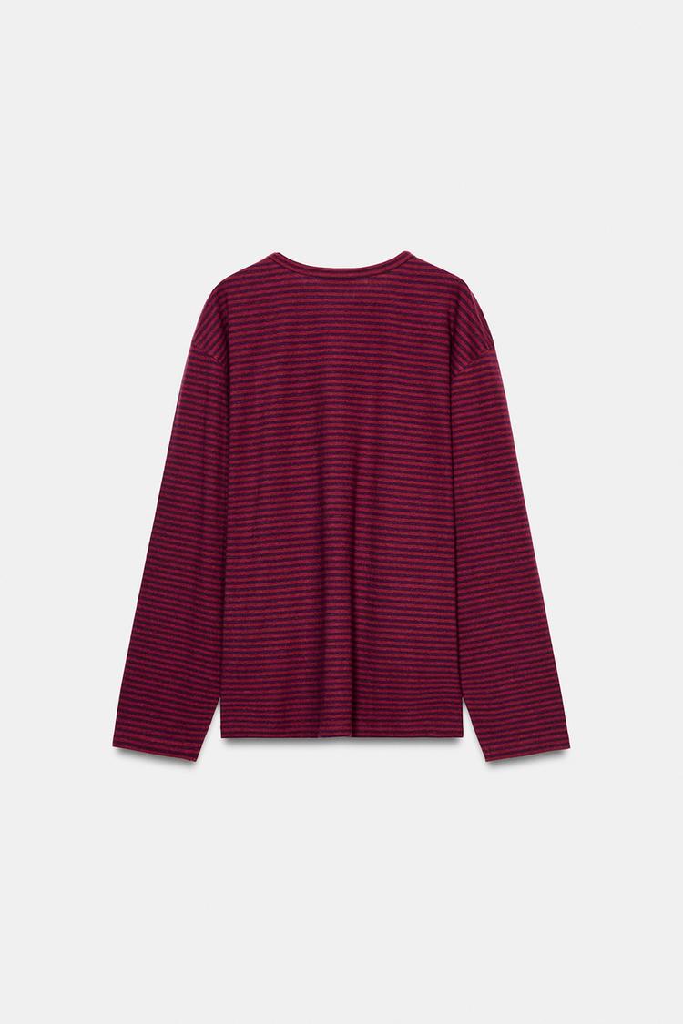 ZARA ФУТБОЛКА ИЗ ХЛОПКА И ЛЬНА В ПОЛОСКУ, ОТТЕНКИ ФИОЛЕТОВОГО