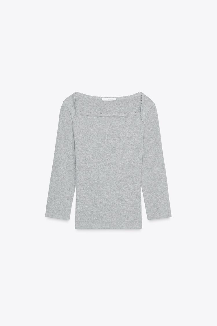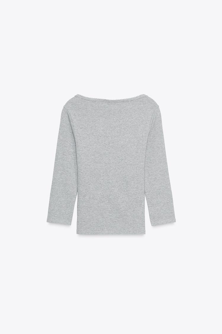 ZARA ФУТБОЛКА ИЗ ХЛОПКА И МОДАЛА, СЕРЫЙ МЕЛАНЖ