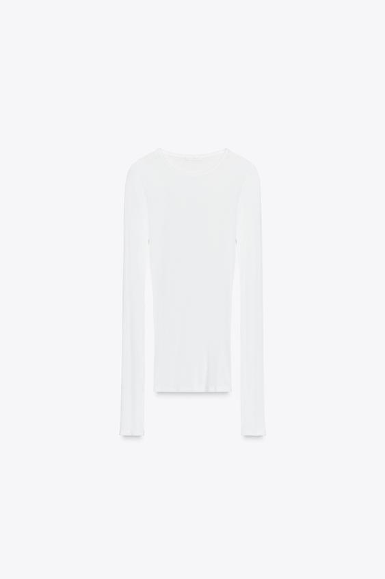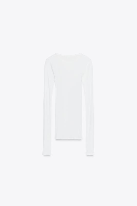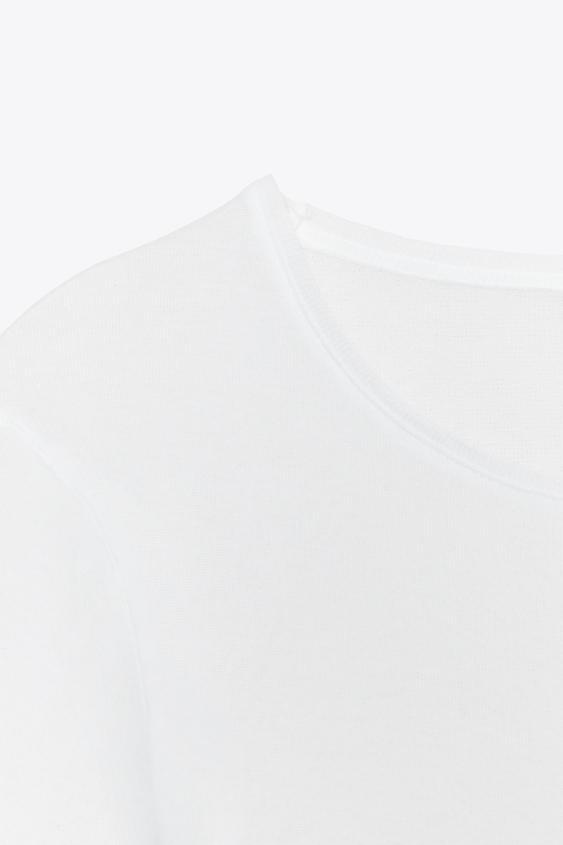 ZARA ФУТБОЛКА ИЗ ХЛОПКА SUPIMA®, БЕЛЫЙ