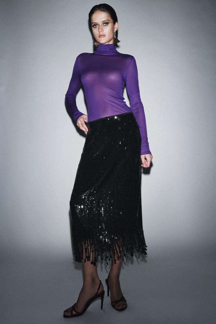 ZARA ФУТБОЛКА ИЗ ХЛОПКА SUPIMA®, ФИОЛЕТОВЫЙ