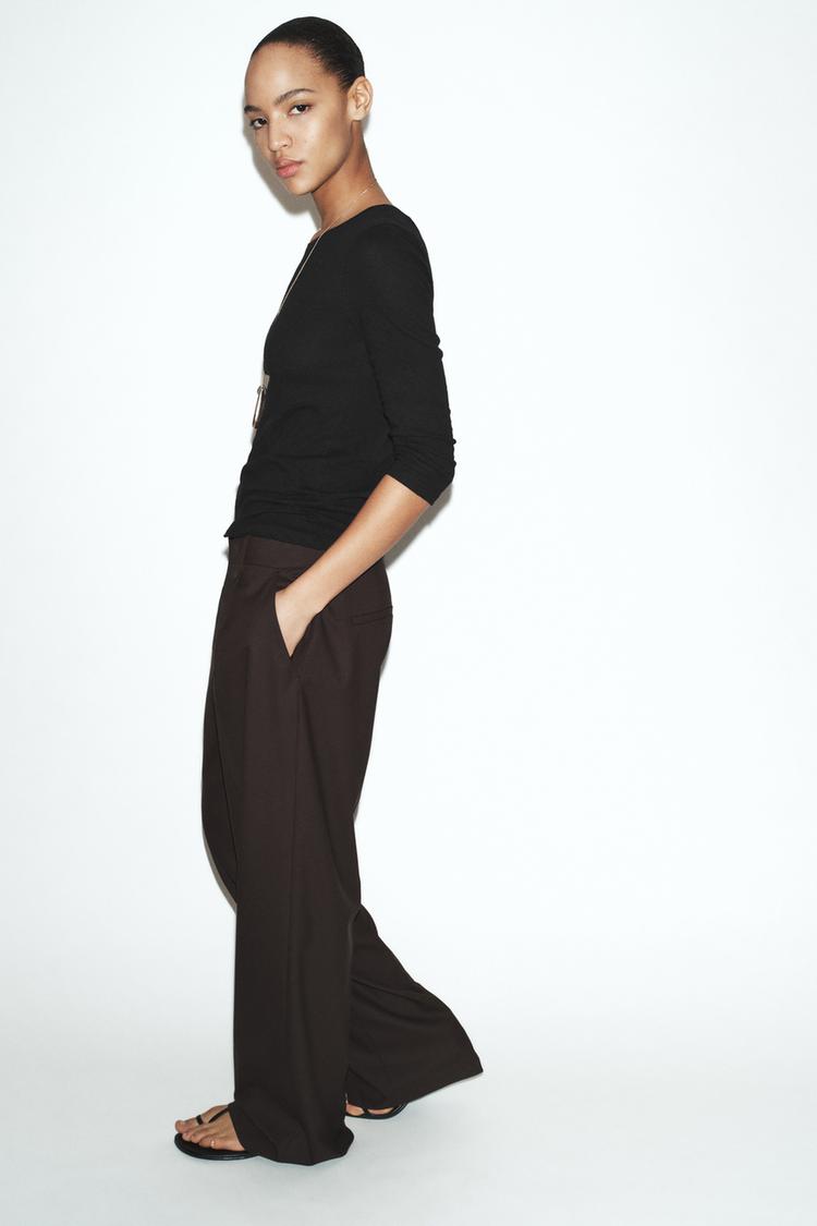 ZARA ФУТБОЛКА ИЗ ЛЬНА С ЭФФЕКТОМ ПОТЕРТОСТИ, ЧЕРНЫЙ