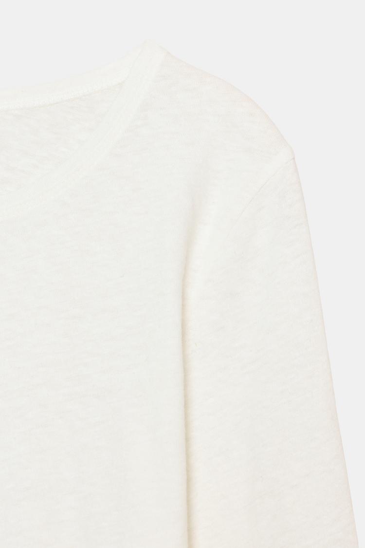 ZARA ФУТБОЛКА ИЗ ЛЬНА С ЭФФЕКТОМ ПОТЕРТОСТИ, ЖЕЛТОВАТО-БЕЛЫЙ