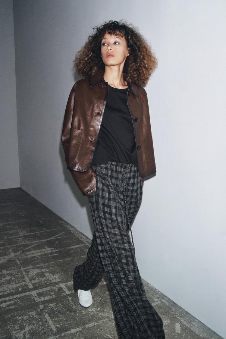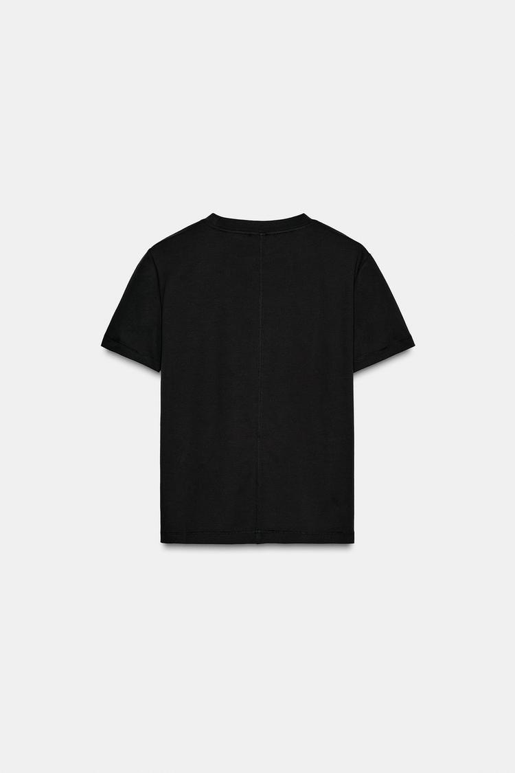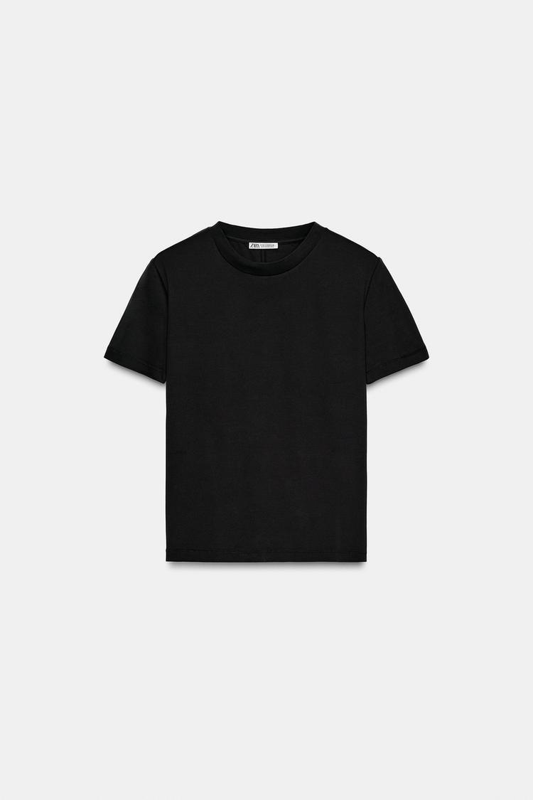 ZARA ФУТБОЛКА ИЗ МЕРСЕРИЗОВАННОГО ХЛОПКА, ЧЕРНЫЙ
