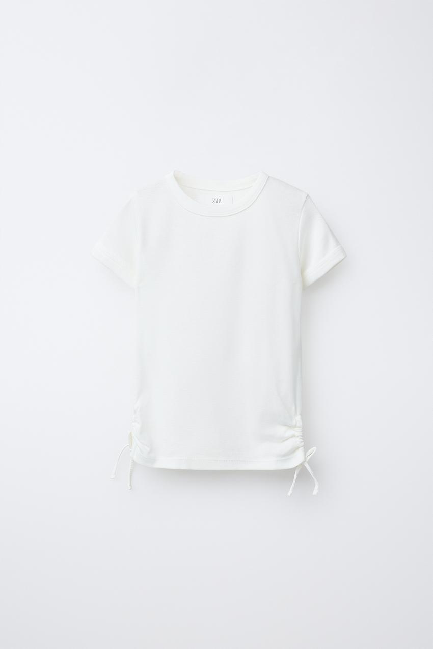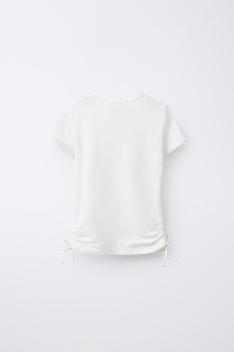 ZARA ФУТБОЛКА ИЗ МОДАЛА С ВЫРЕЗАМИ И БАНТАМИ, БЕЛЫЙ