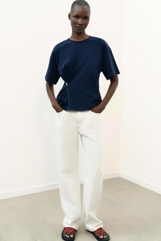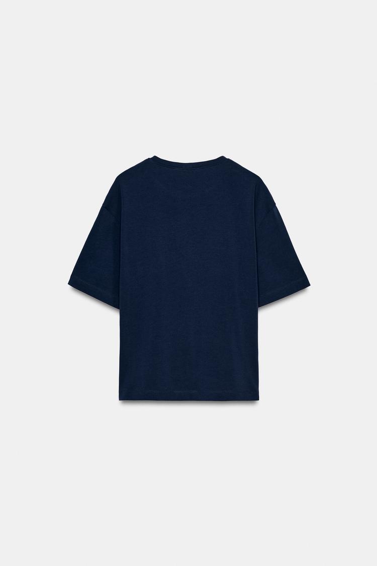 ZARA ФУТБОЛКА ИЗ ПЛОТНОГО ХЛОПКА С АППЛИКАЦИЕЙ, МОРСКОЙ СИНИЙ