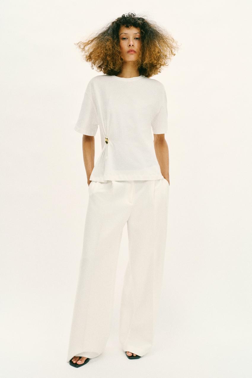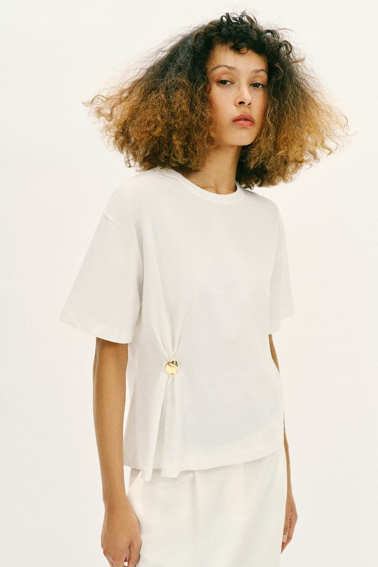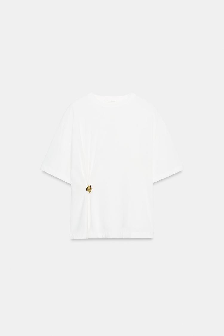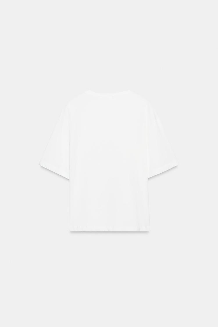 ZARA ФУТБОЛКА ИЗ ПЛОТНОГО ХЛОПКА С АППЛИКАЦИЕЙ, ЖЕЛТОВАТО-БЕЛЫЙ
