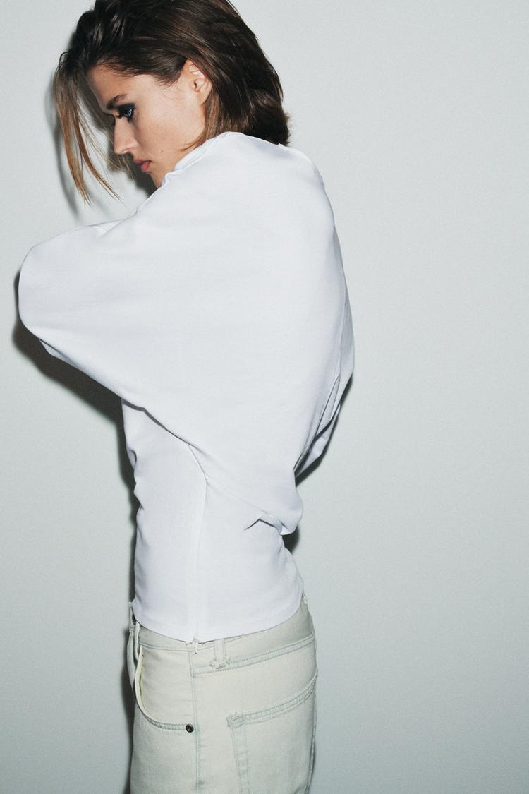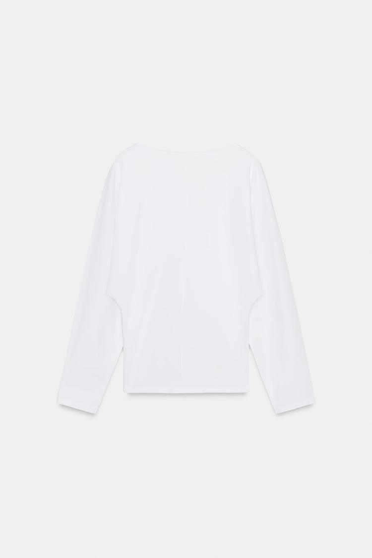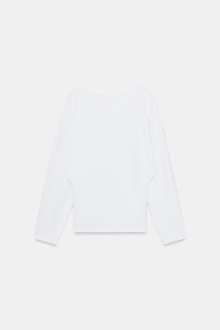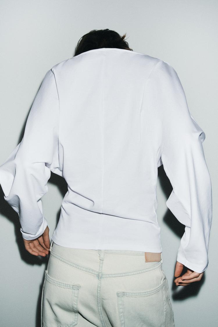 ZARA ФУТБОЛКА ИЗ ПЛОТНОГО ХЛОПКА С ДЛИННЫМИ РУКАВАМИ, БЕЛЫЙ