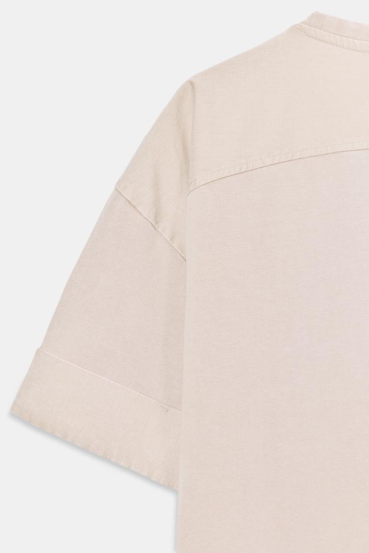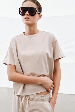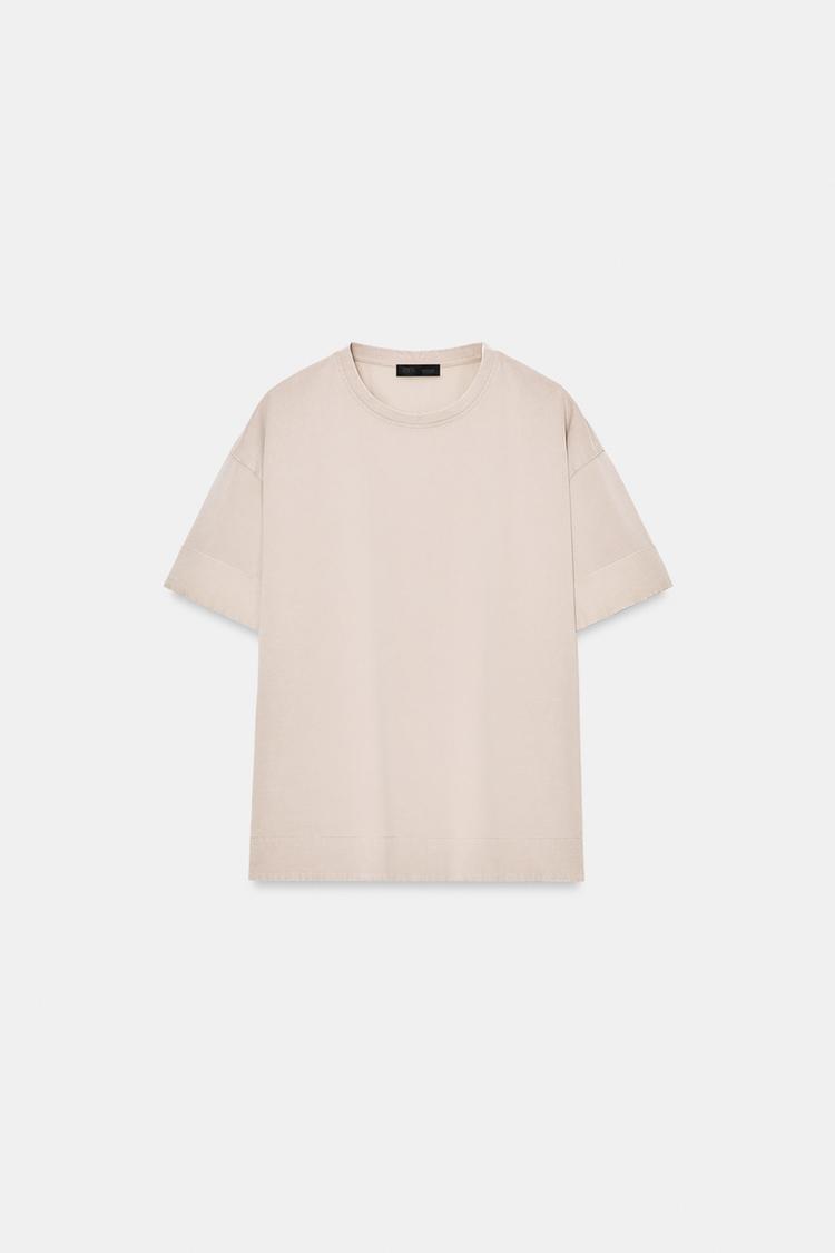 ZARA ФУТБОЛКА ИЗ ПЛОТНОГО ХЛОПКА С КОРОТКИМИ РУКАВАМИ, СВЕТЛЫЙ СЕРО-КОРИЧЕВЫЙ