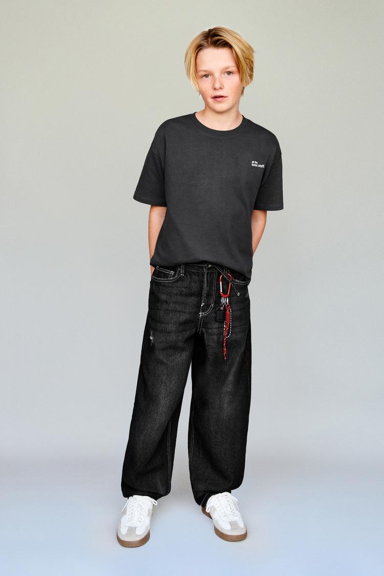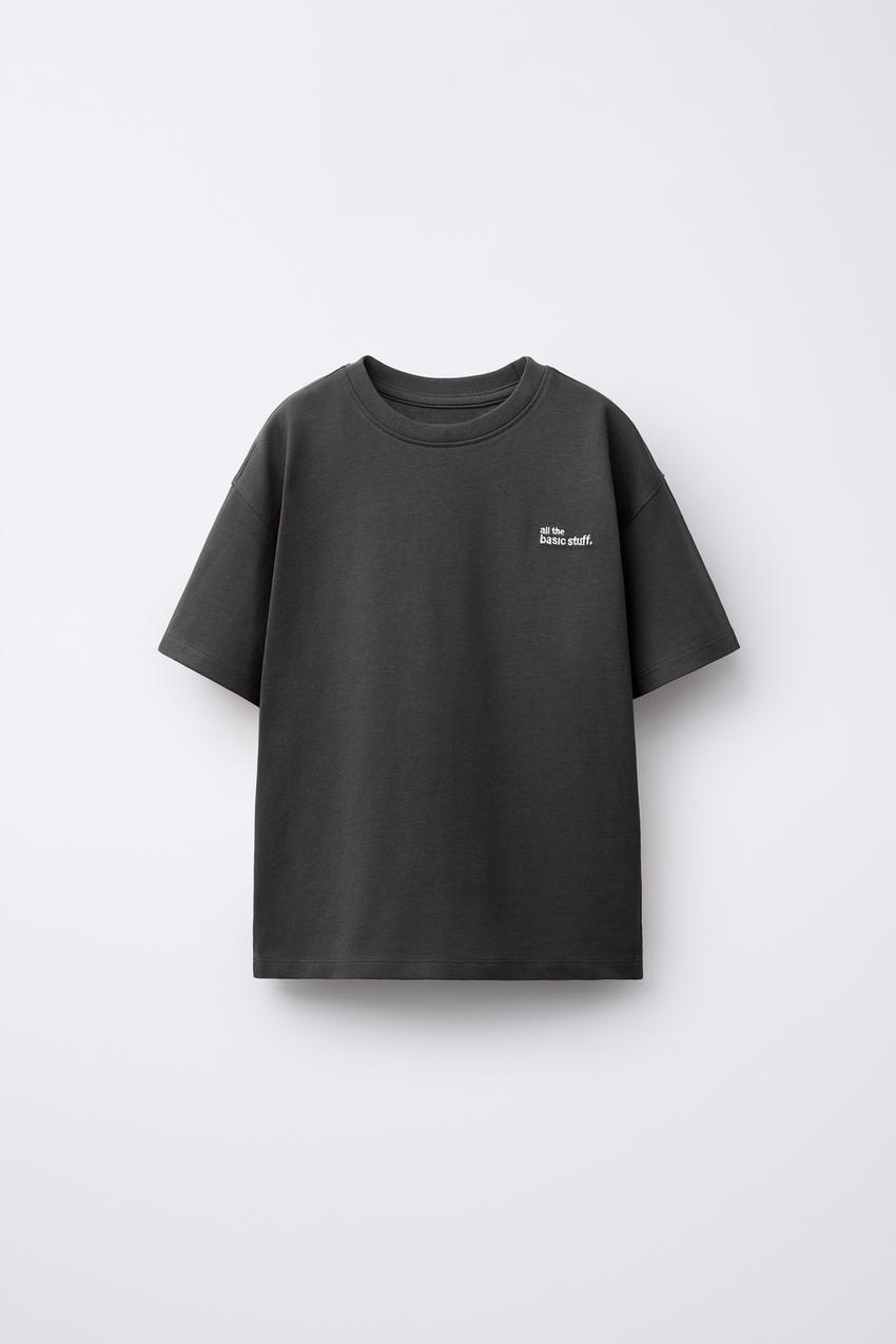 ZARA ФУТБОЛКА ИЗ ПЛОТНОЙ ТКАНИ С ВЫШИТОЙ НАДПИСЬЮ, АНТРАЦИТОВО-СЕРЫЙ