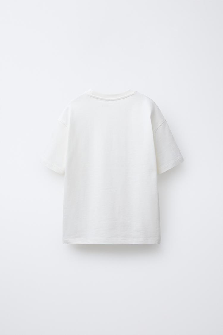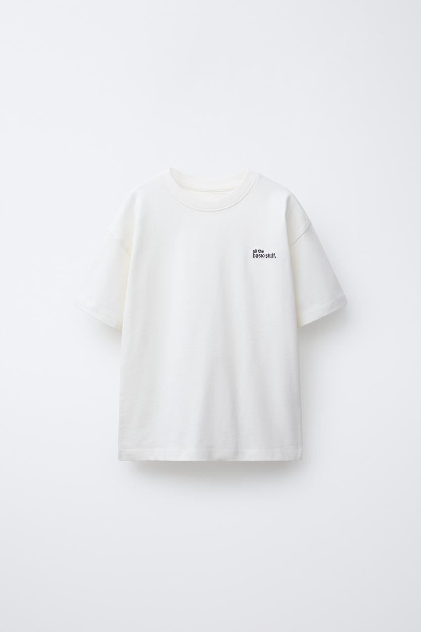 ZARA ФУТБОЛКА ИЗ ПЛОТНОЙ ТКАНИ С ВЫШИТОЙ НАДПИСЬЮ, ЭКРЮ