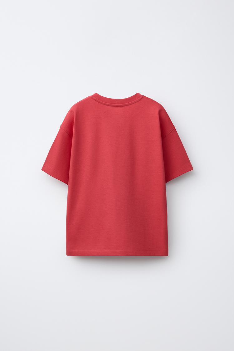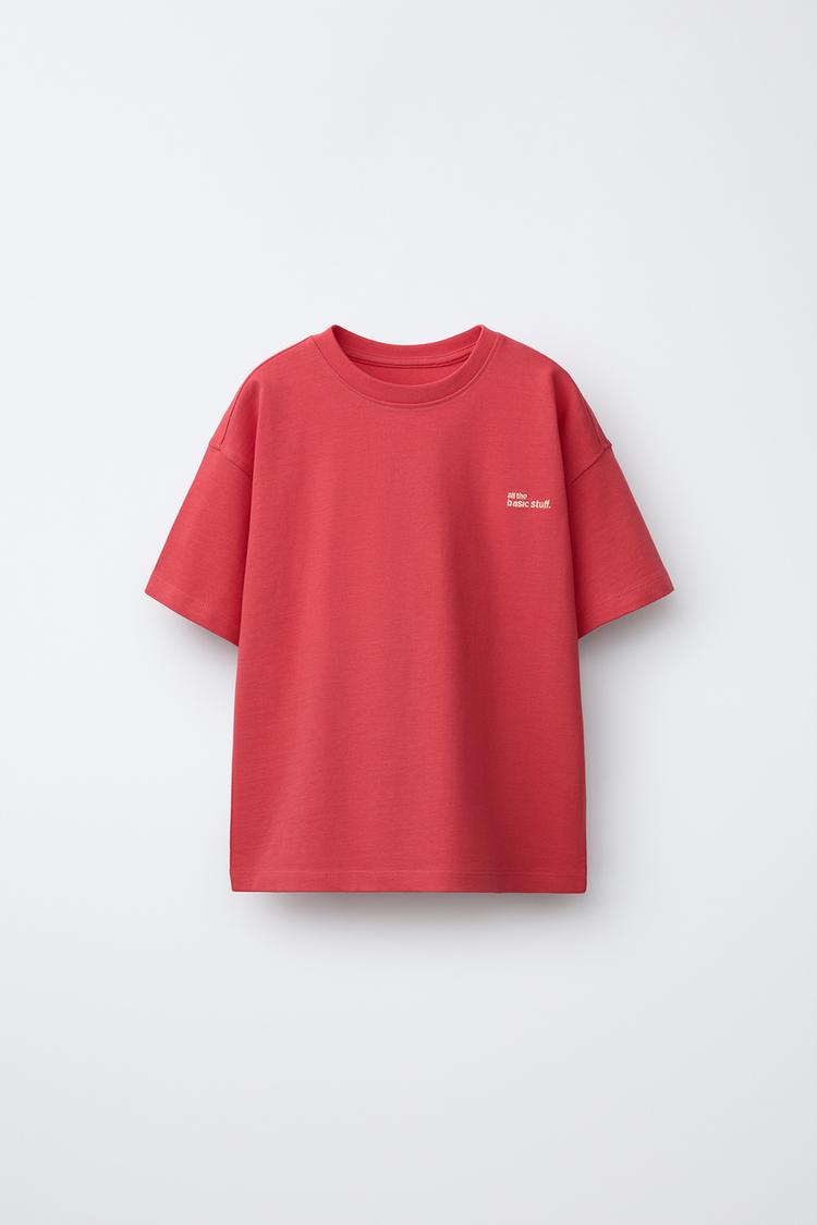 ZARA ФУТБОЛКА ИЗ ПЛОТНОЙ ТКАНИ С ВЫШИТОЙ НАДПИСЬЮ, МАЛИНОВЫЙ
