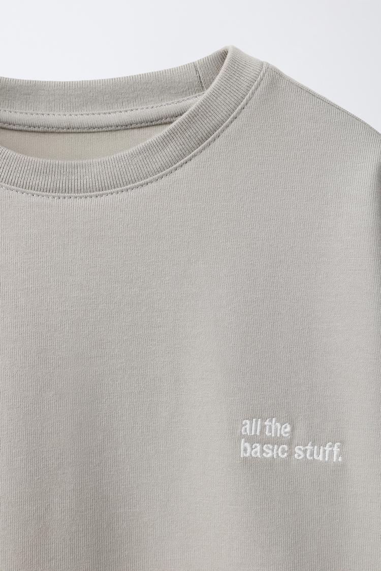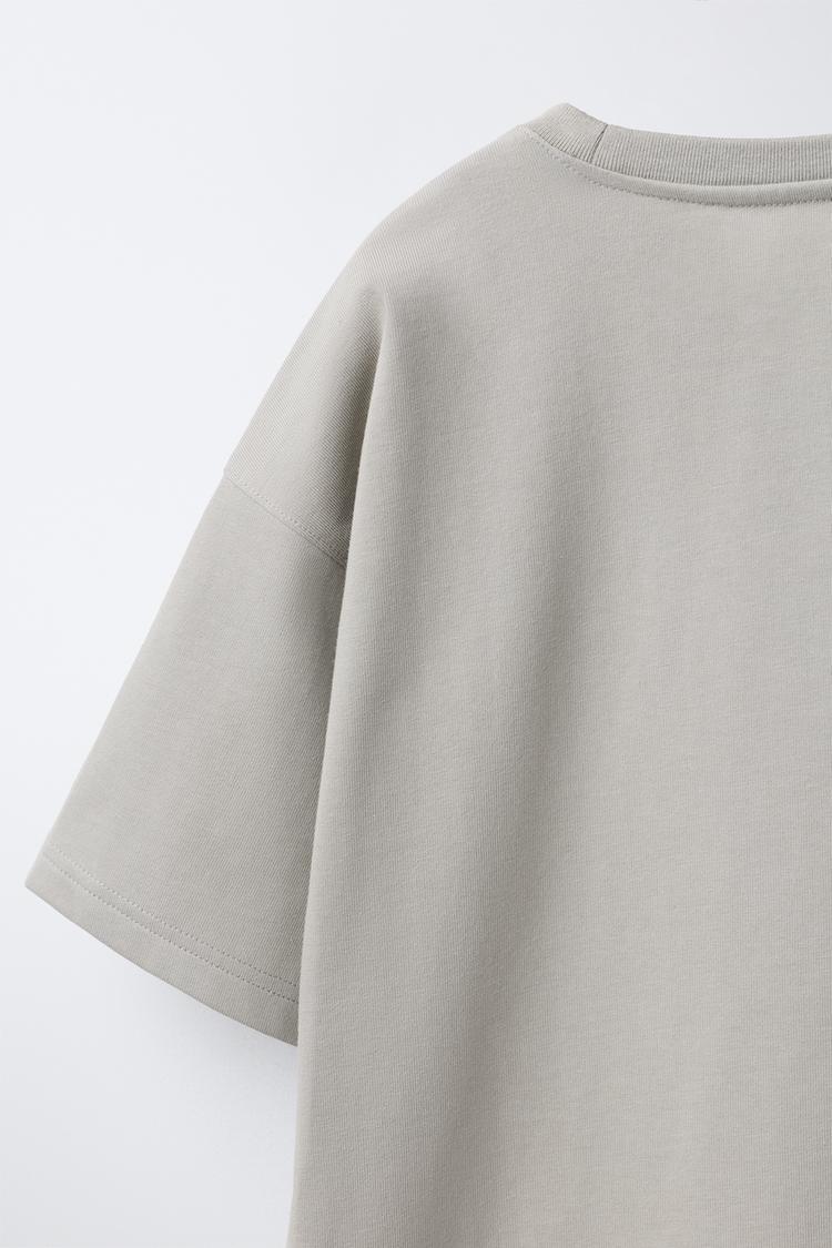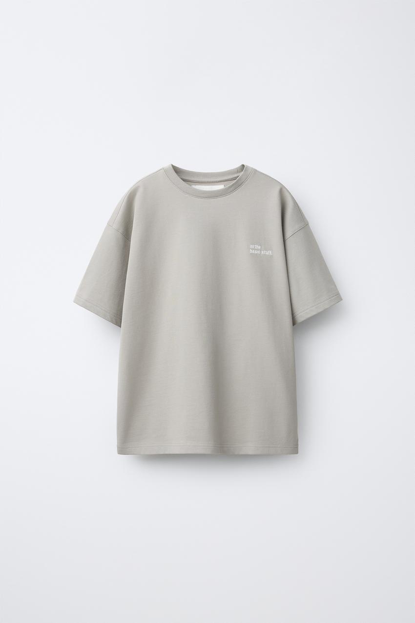 ZARA ФУТБОЛКА ИЗ ПЛОТНОЙ ТКАНИ С ВЫШИТОЙ НАДПИСЬЮ, МЯГКИЙ СЕРЫЙ