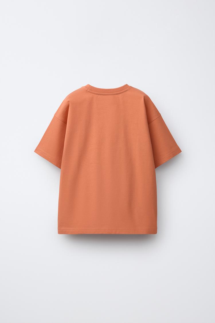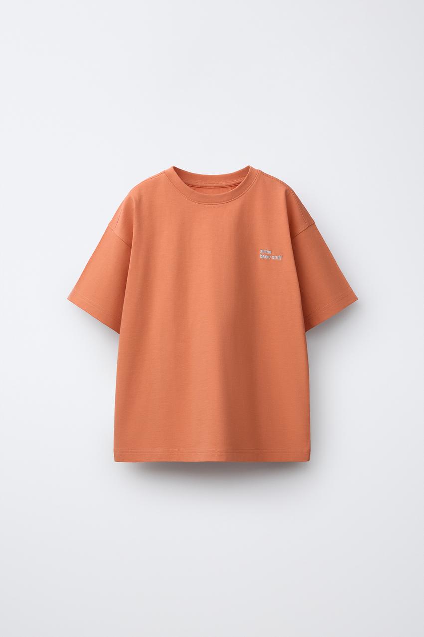 ZARA ФУТБОЛКА ИЗ ПЛОТНОЙ ТКАНИ С ВЫШИТОЙ НАДПИСЬЮ, ОРАНЖЕВЫЙ