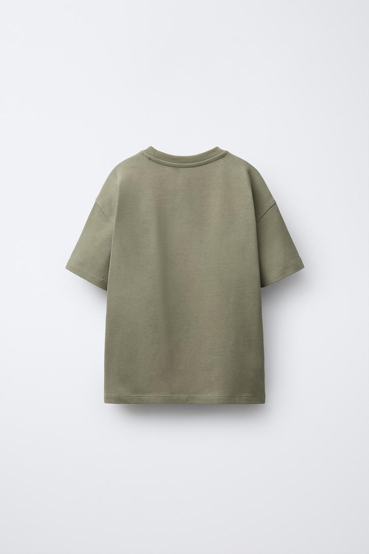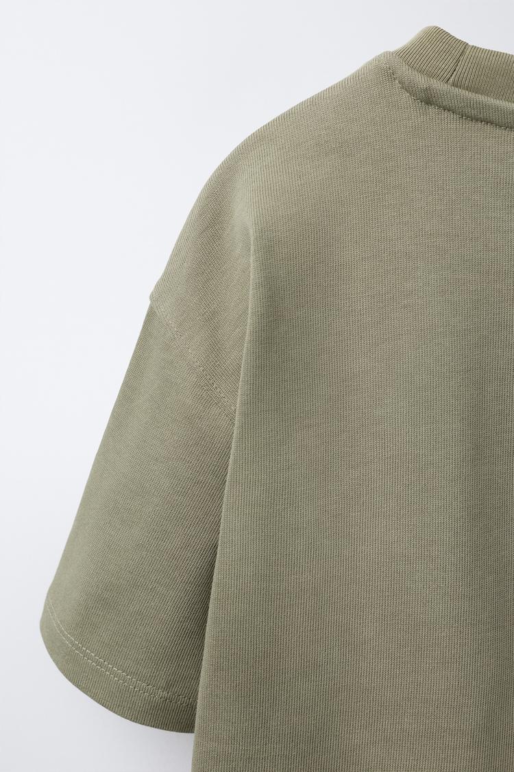 ZARA ФУТБОЛКА ИЗ ПЛОТНОЙ ТКАНИ С ВЫШИТОЙ НАДПИСЬЮ, СВЕТЛЫЙ ХАКИ