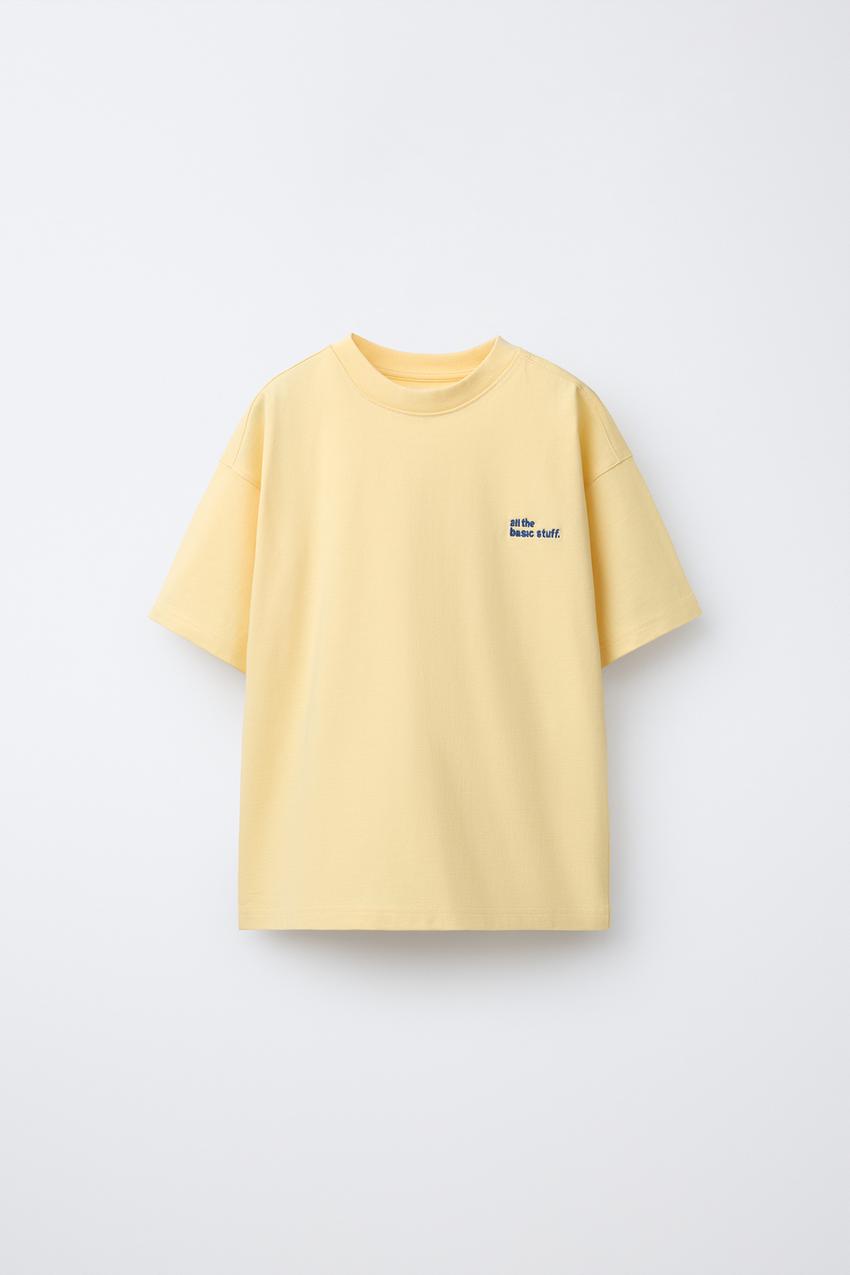 ZARA ФУТБОЛКА ИЗ ПЛОТНОЙ ТКАНИ С ВЫШИТОЙ НАДПИСЬЮ, ЖЕЛТЫЙ