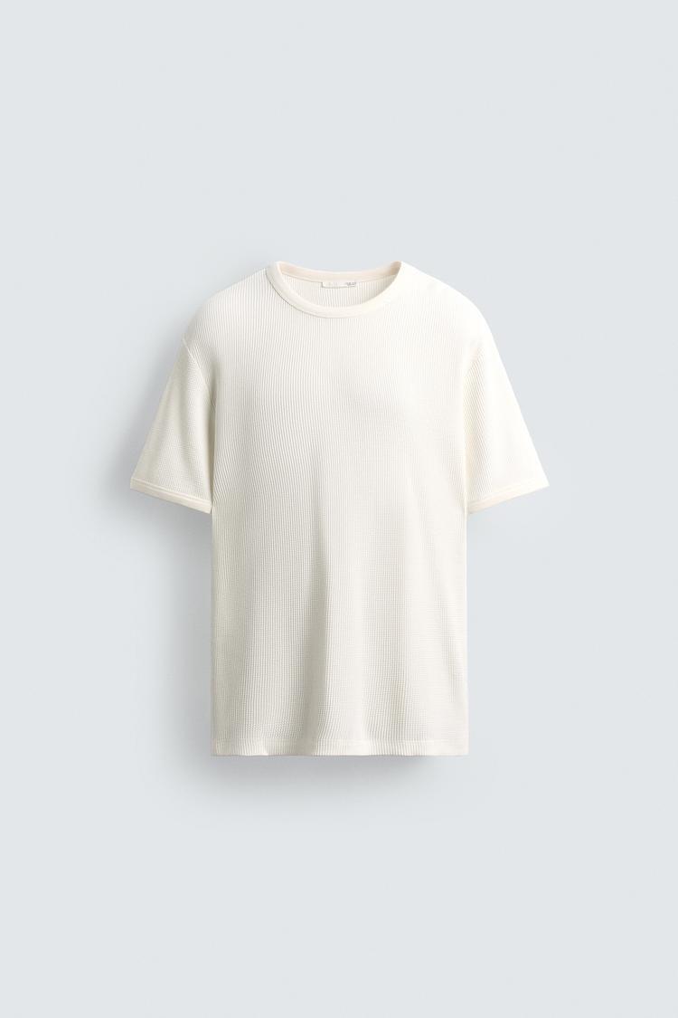 ZARA ФУТБОЛКА ИЗ РЕЛЬЕФНОЙ ТКАНИ ВАФЕЛЬНОГО ПЕРЕПЛЕТЕНИЯ, ЭКРЮ
