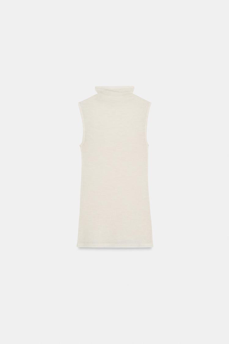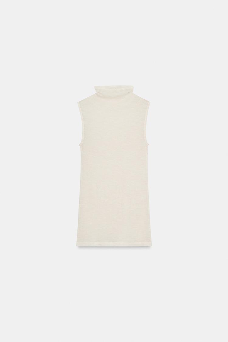 ZARA ФУТБОЛКА ИЗ ШЕРСТИ БЕЗ РУКАВОВ, СВЕТЛО-БЕЖЕВЫЙ
