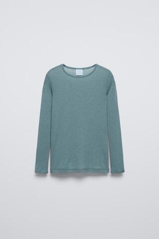 ZARA ФУТБОЛКА ИЗ СМЕСОВОЙ ШЕРСТИ, ВОДЯНИСТО-ЗЕЛЕНЫЙ