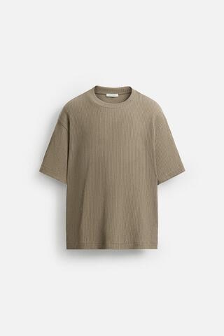 ZARA ФУТБОЛКА ИЗ ТКАНИ НЕОДНОРОДНОЙ СТРУКТУРЫ, СЕРОВАТО-КОРИЧНЕВЫЙ