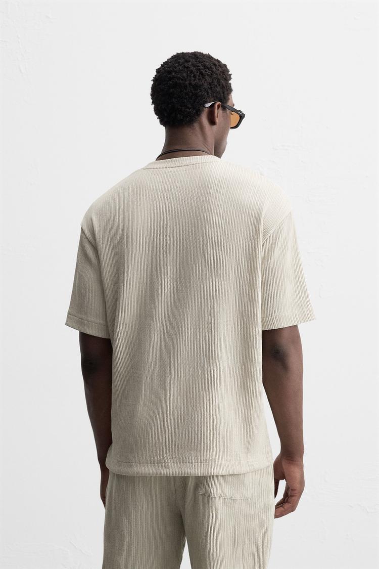 ZARA ФУТБОЛКА ИЗ ТКАНИ НЕОДНОРОДНОЙ СТРУКТУРЫ, СВЕТЛО-СЕРЫЙ