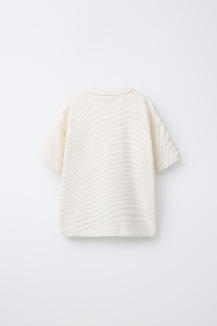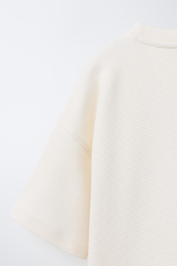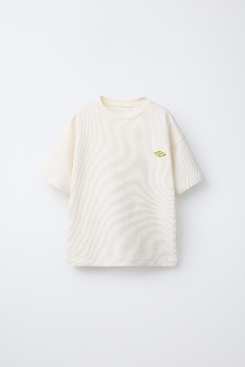 ZARA ФУТБОЛКА ИЗ ТКАНИ ОТТОМАН С НАШИВКОЙ, ЭКРЮ
