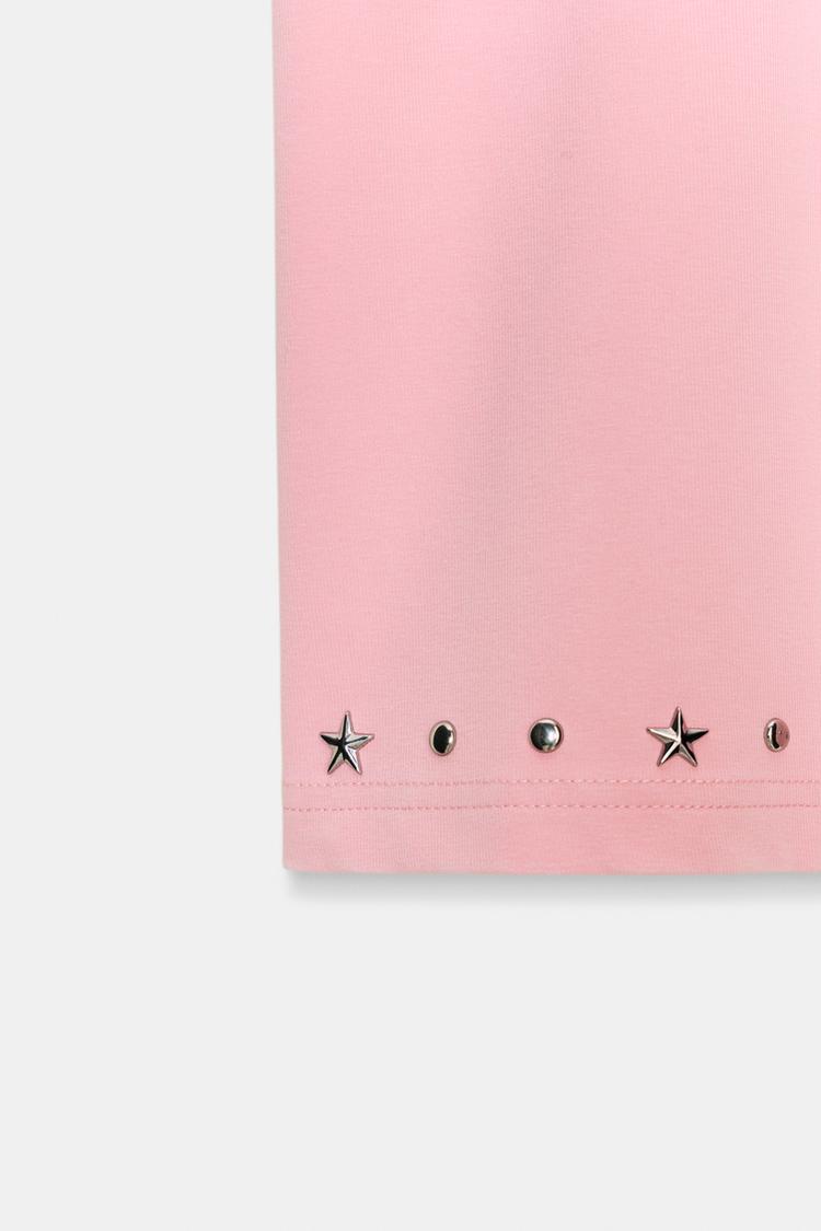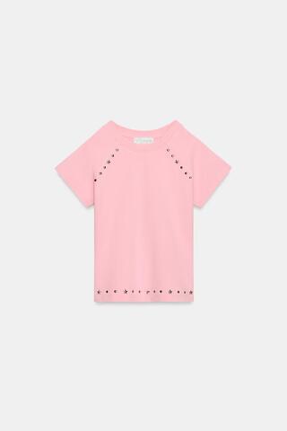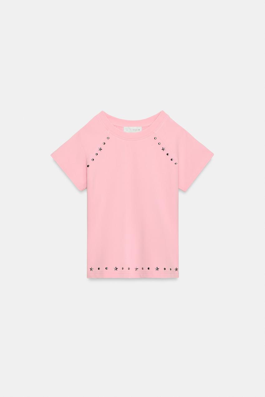 ZARA ФУТБОЛКА ИЗ ТКАНИ С ЭФФЕКТОМ ПОТЕРТОСТИ И ЗАКЛЕПКАМИ, РОЗОВЫЙ