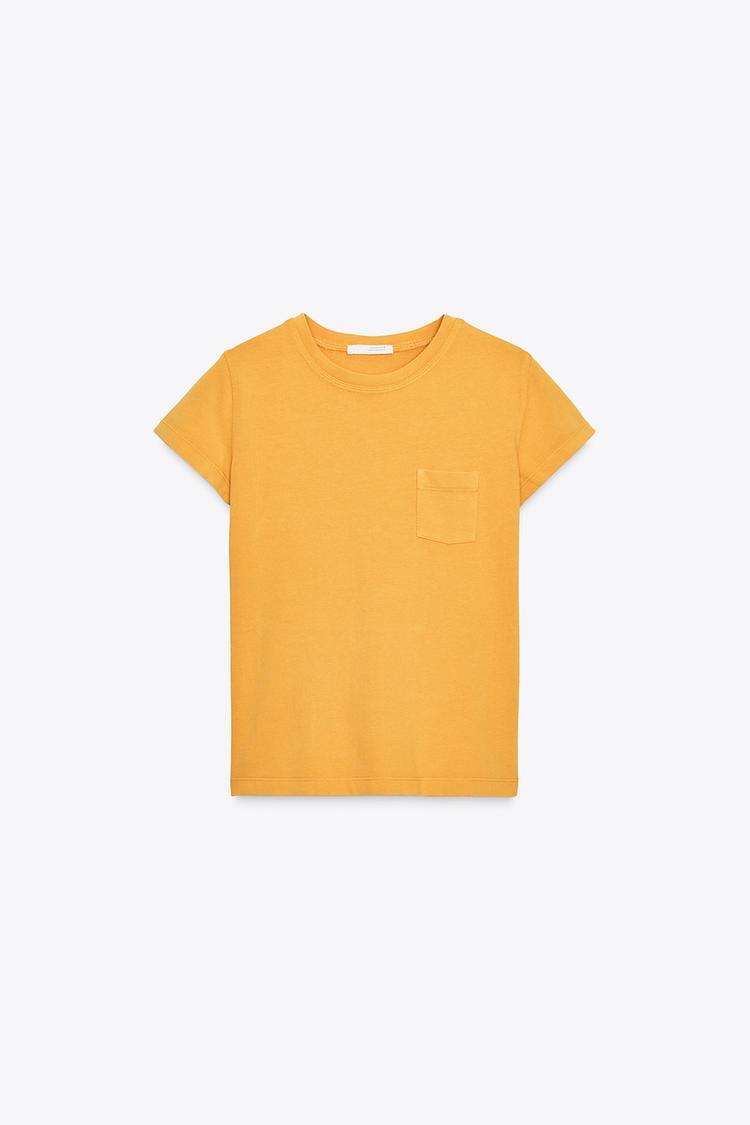 ZARA ФУТБОЛКА ИЗ ТКАНИ С ЭФФЕКТОМ ПОТЕРТОСТИ С КАРМАНОМ, ОРАНЖЕВЫЙ