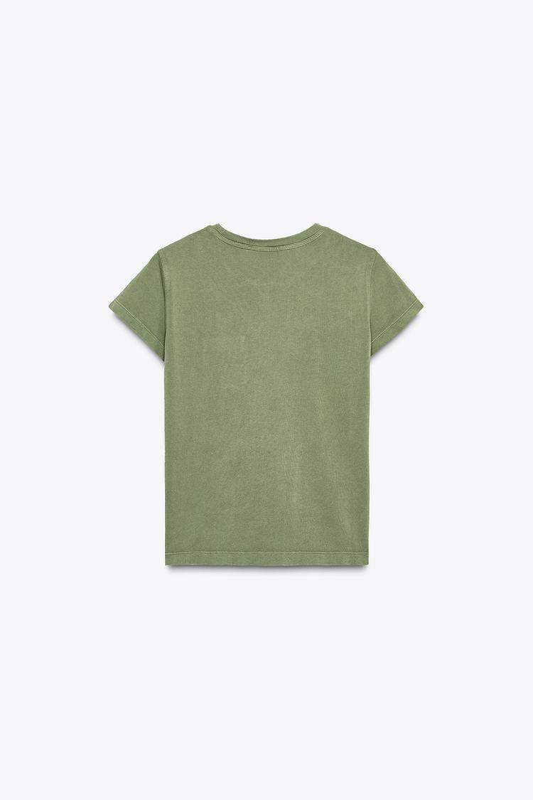 ZARA ФУТБОЛКА ИЗ ТКАНИ С ЭФФЕКТОМ ПОТЕРТОСТИ С КАРМАНОМ, ЗЕЛЕНЫЙ